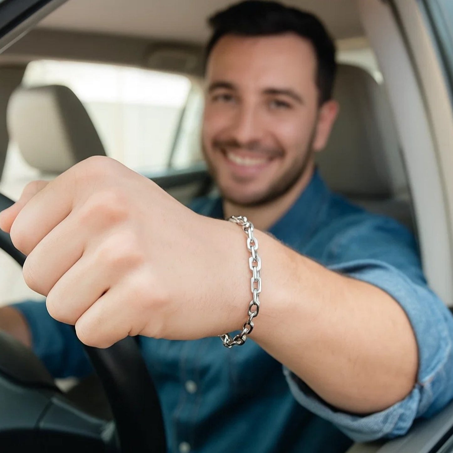 This french cable chain bracelet comes in 14k white gold and has a width of 4.8 millimeters. Secured with a lobster clasp.