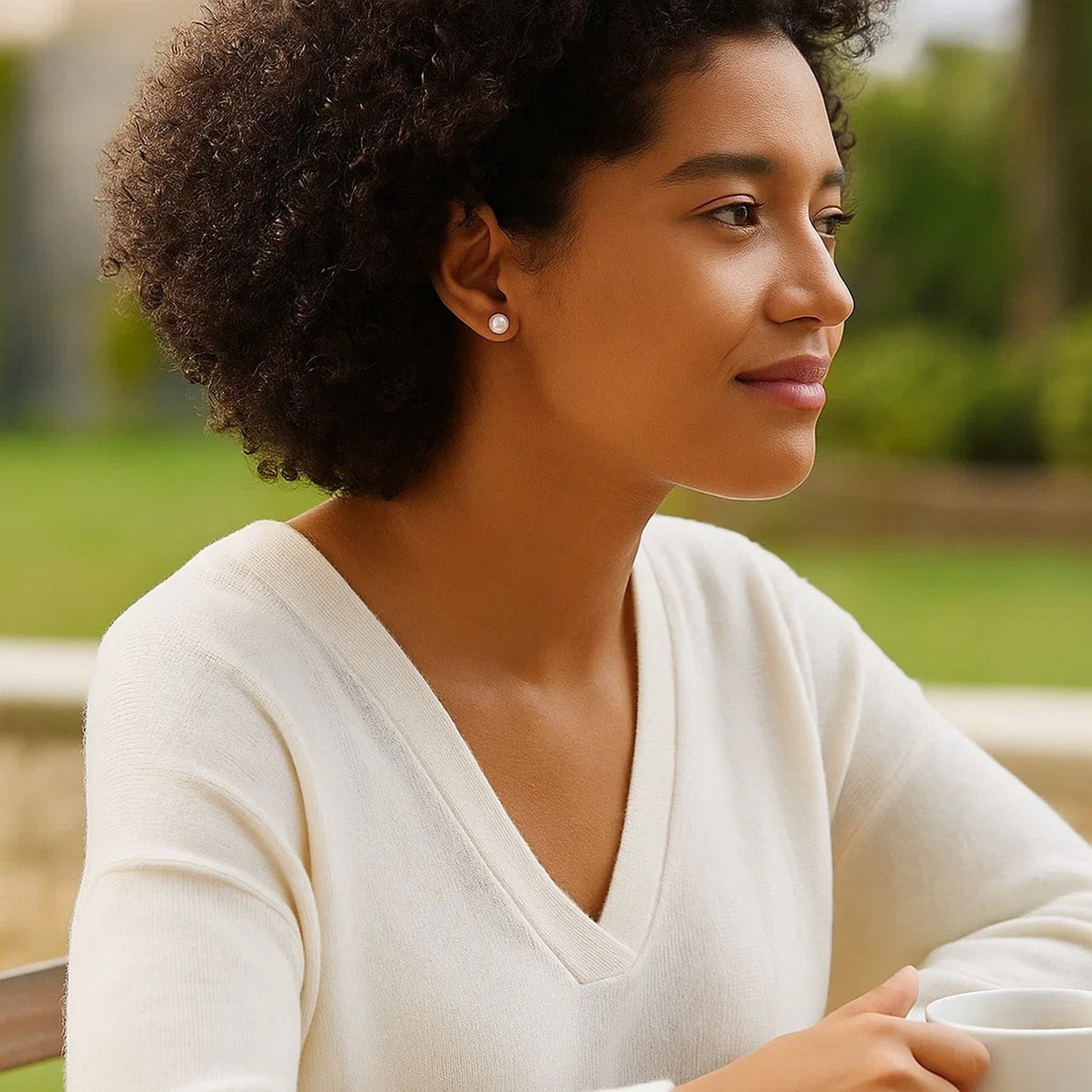 14k Yellow Gold Freshwater Cultured White Pearl Stud Earrings (8mm)