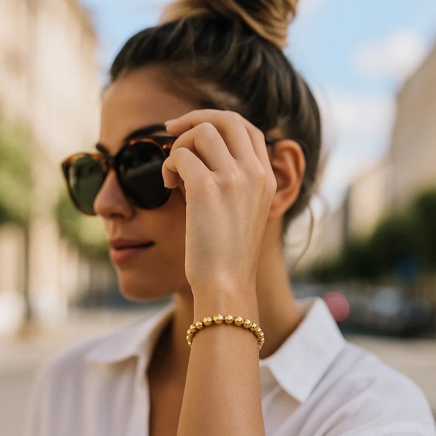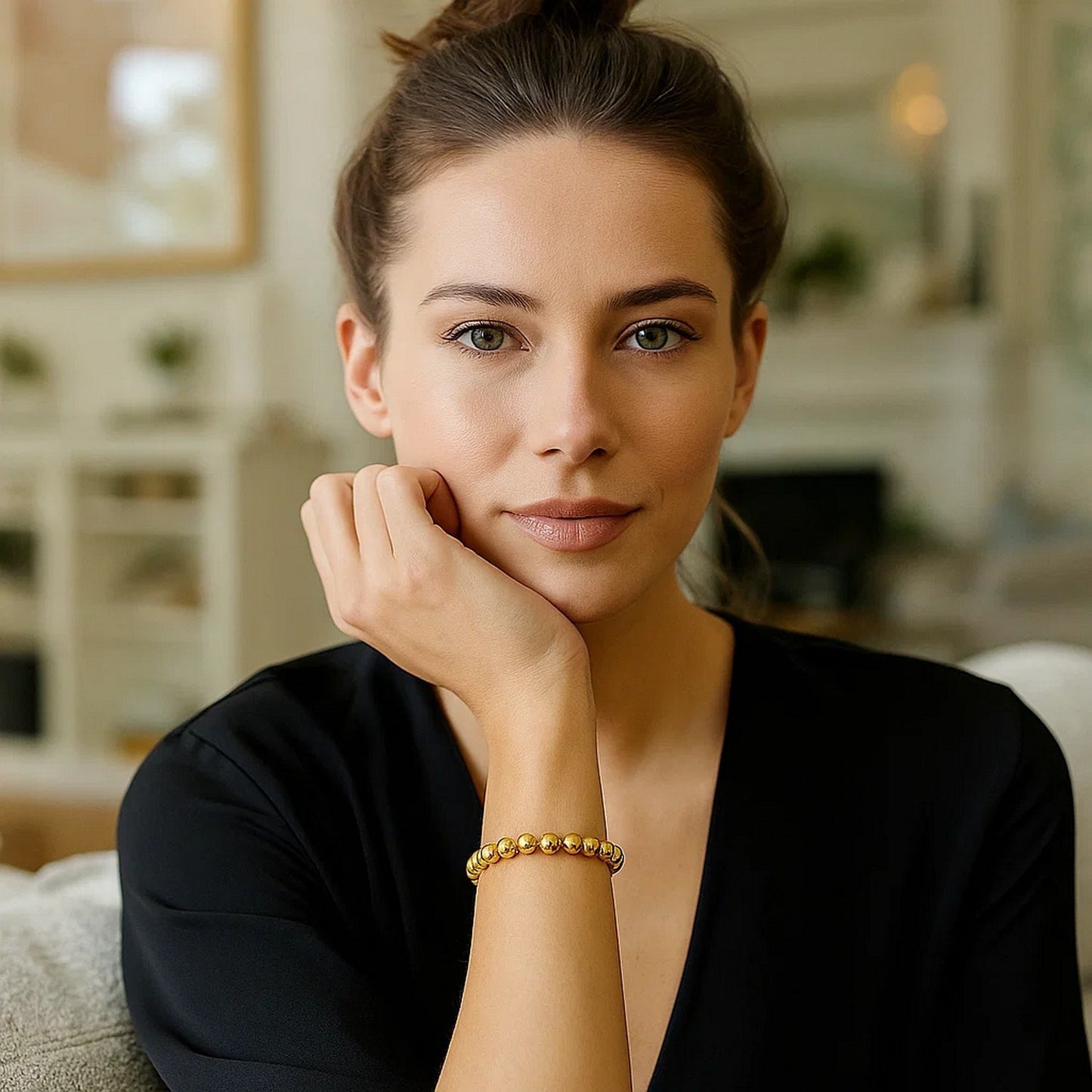 Polished 7mm Bead Bracelet in 14K Yellow Gold