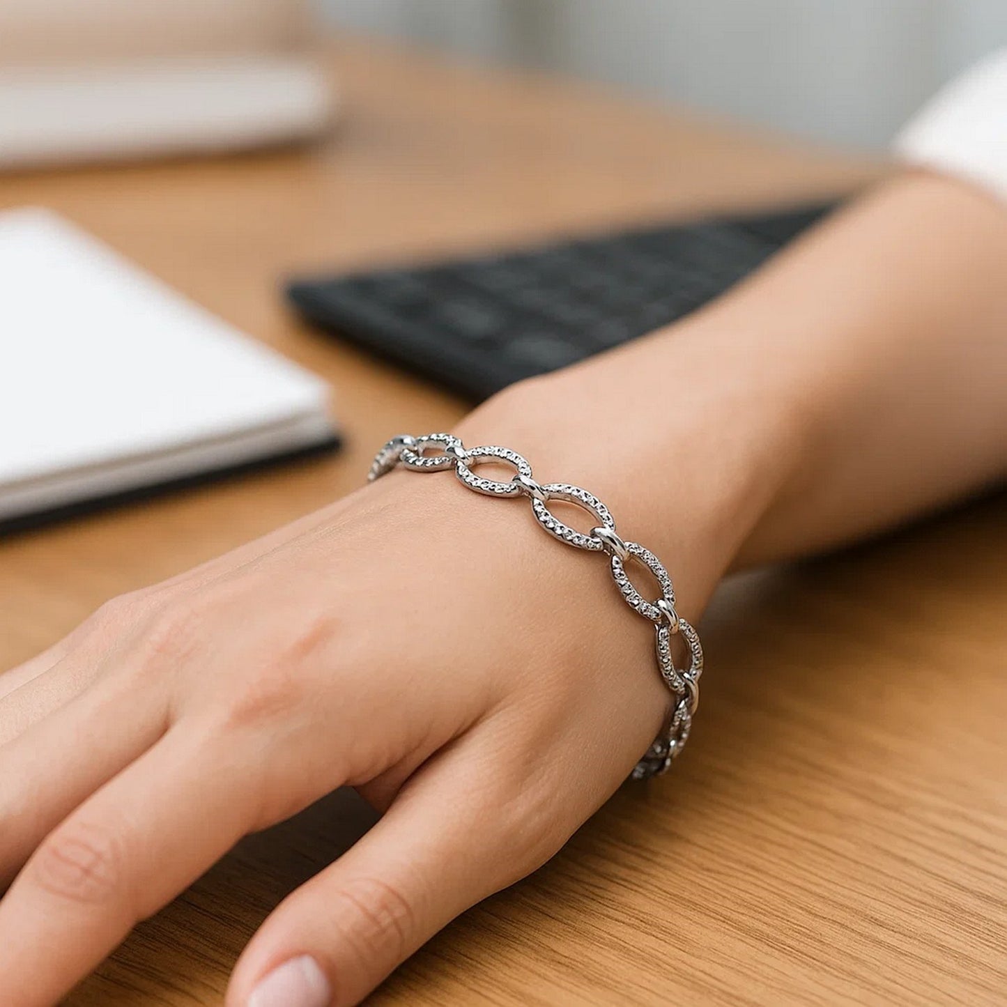 Textured Oval Link Bracelet in 14k White Gold (8.60 mm)