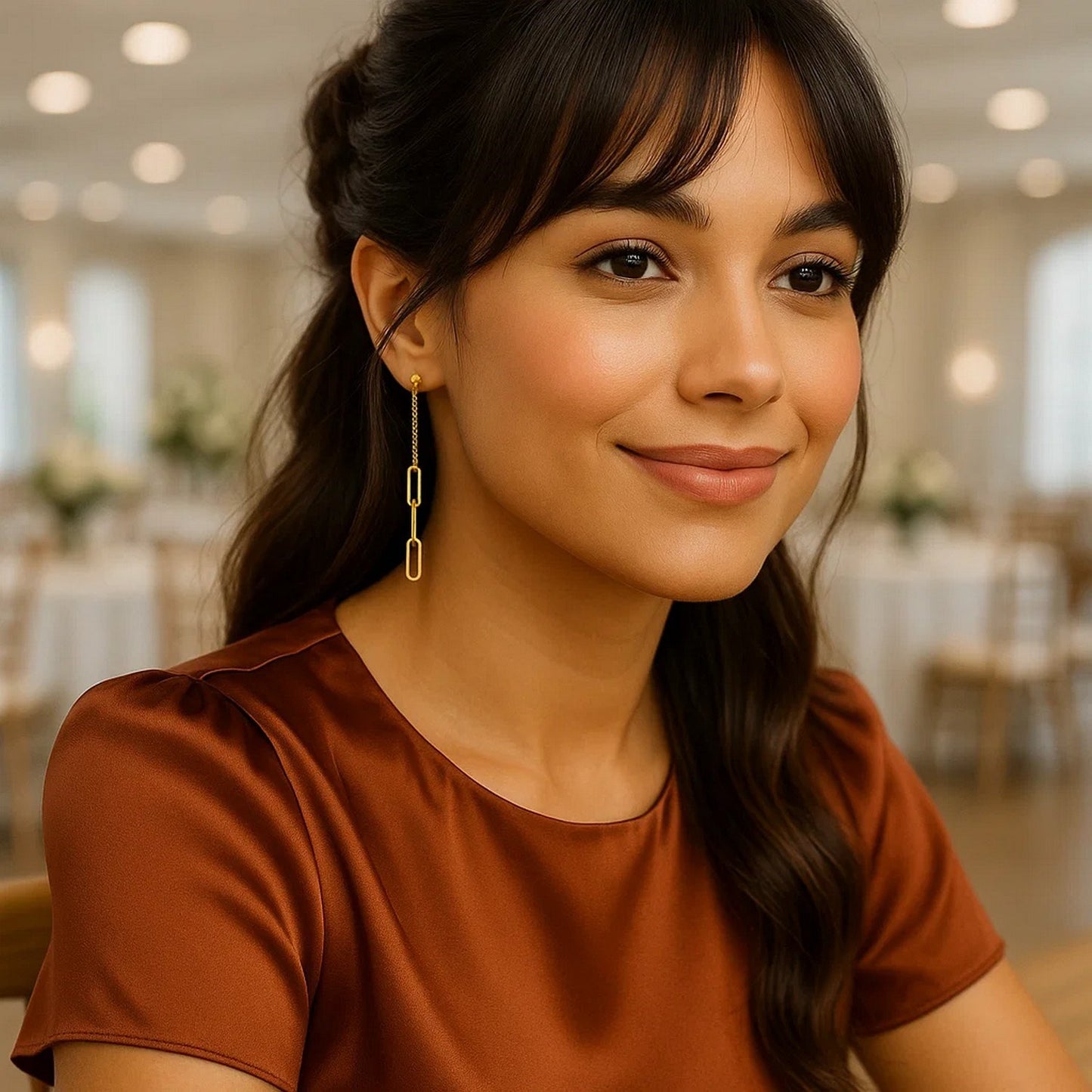 14K Yellow Gold Paperclip Chain and Fine Link Earrings