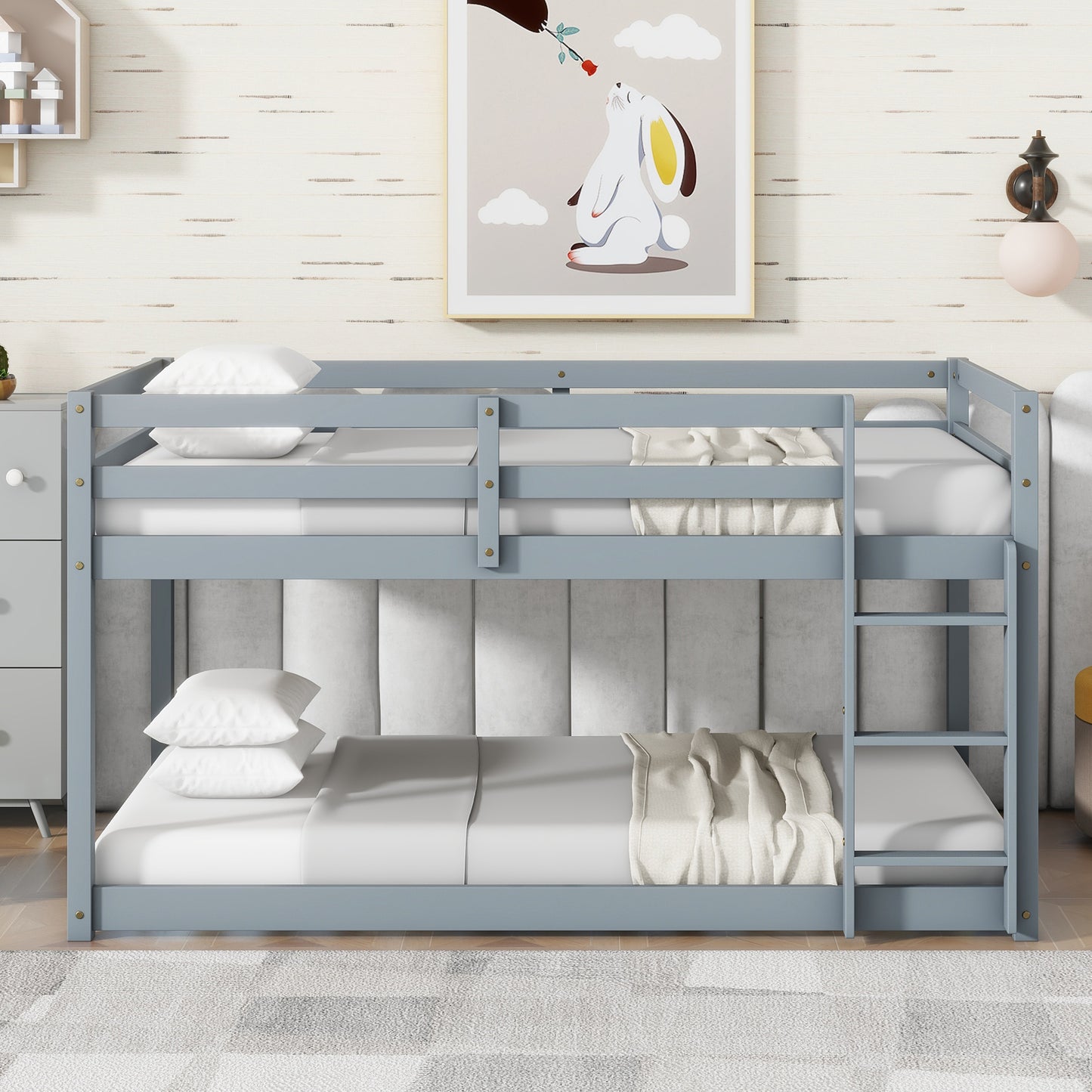 Twin over Twin Bunk Bed with Convertible Slide and Stairway, Gray