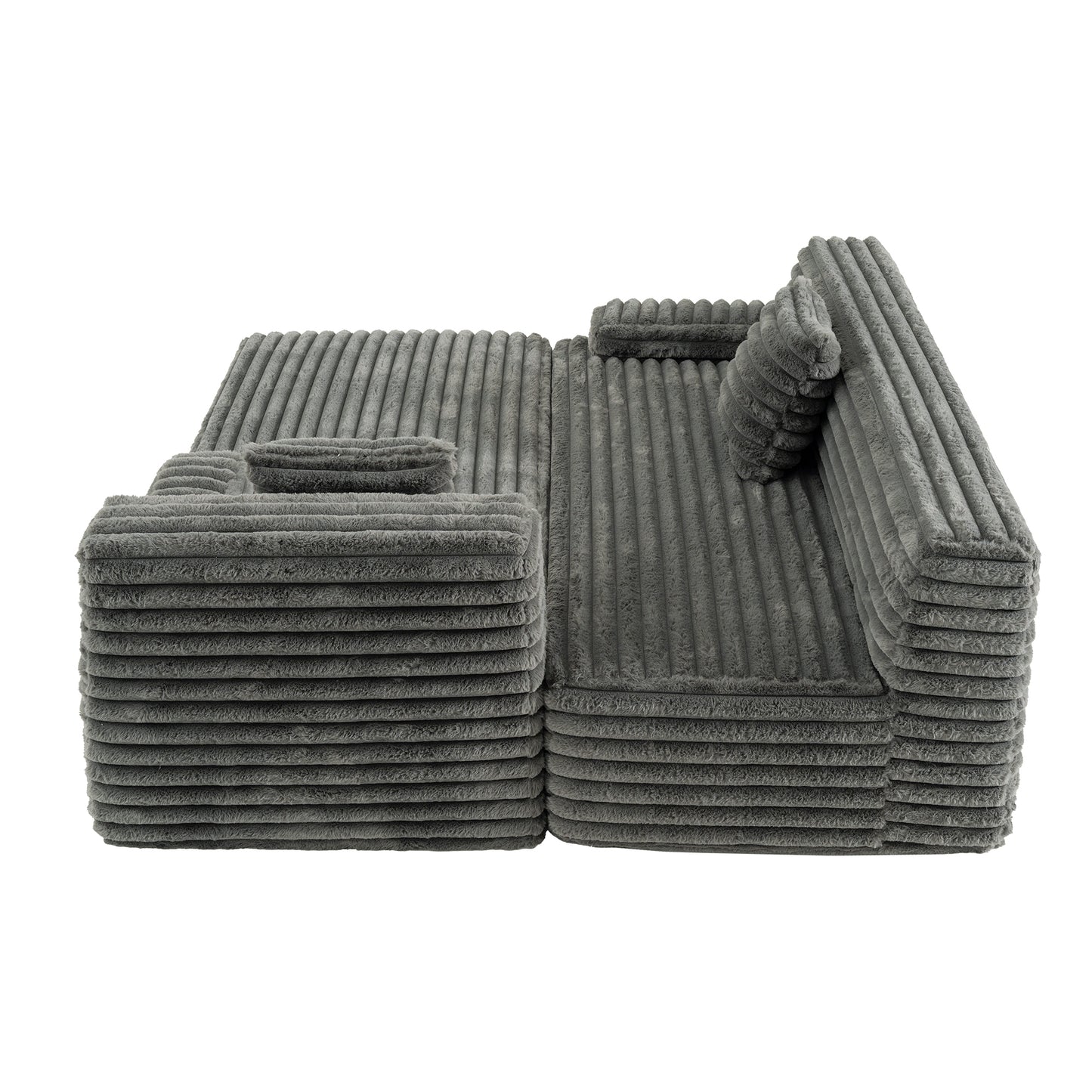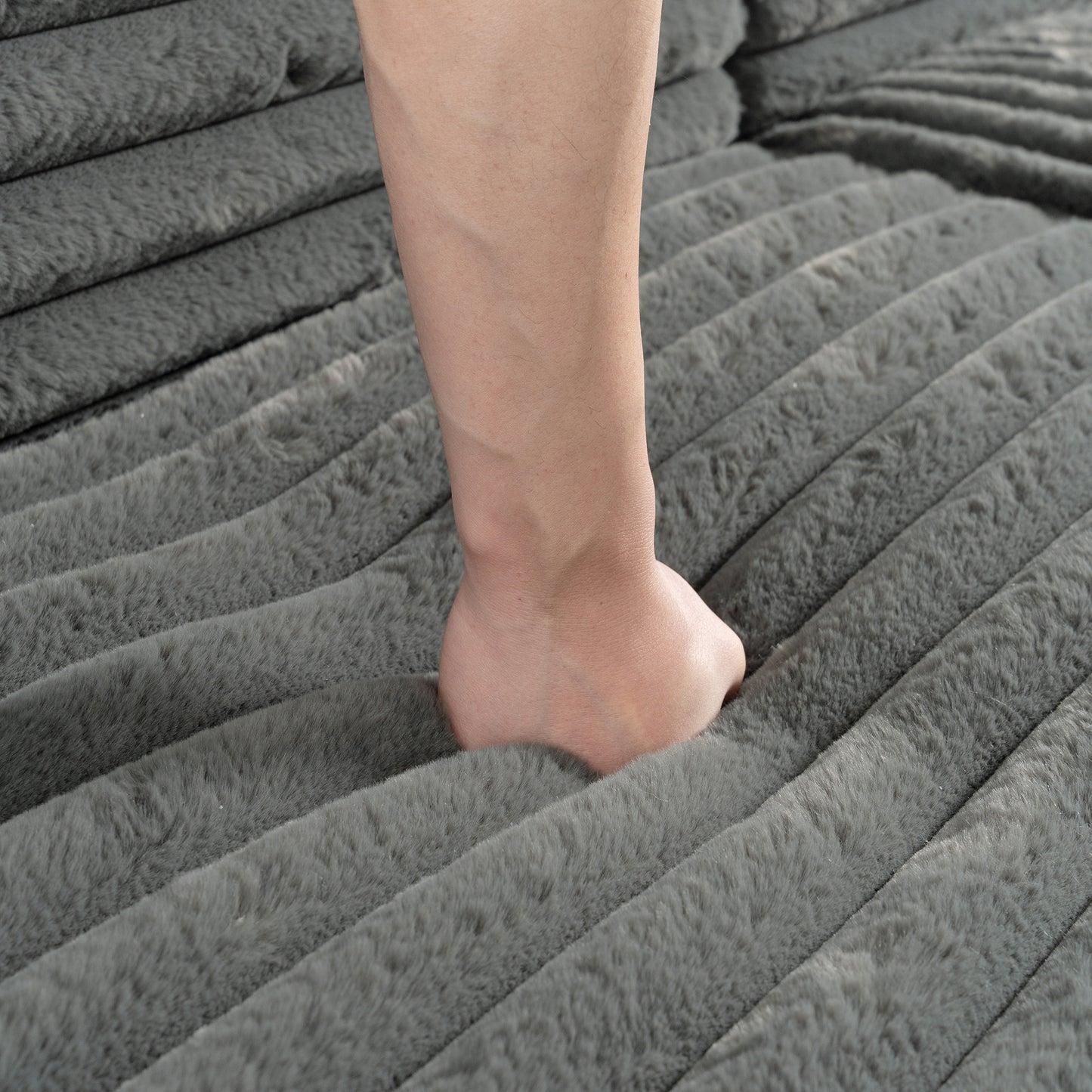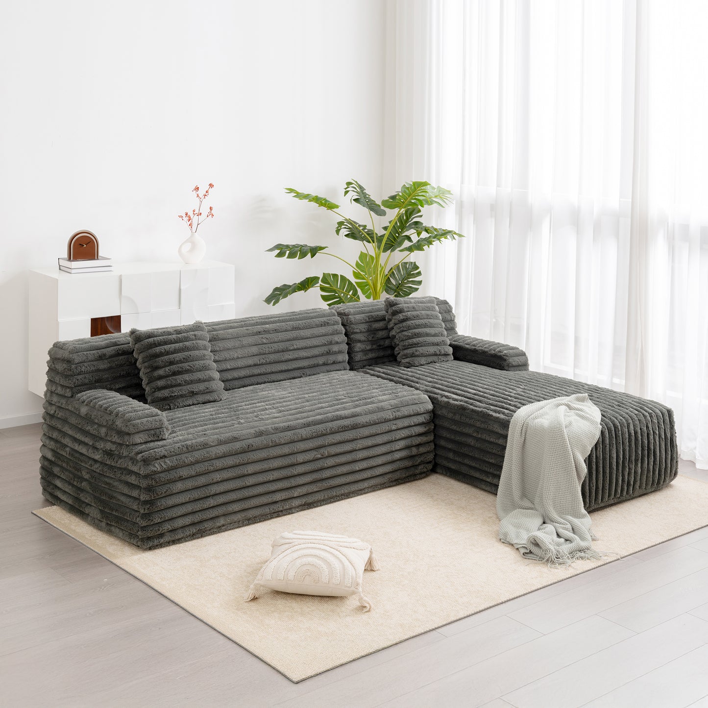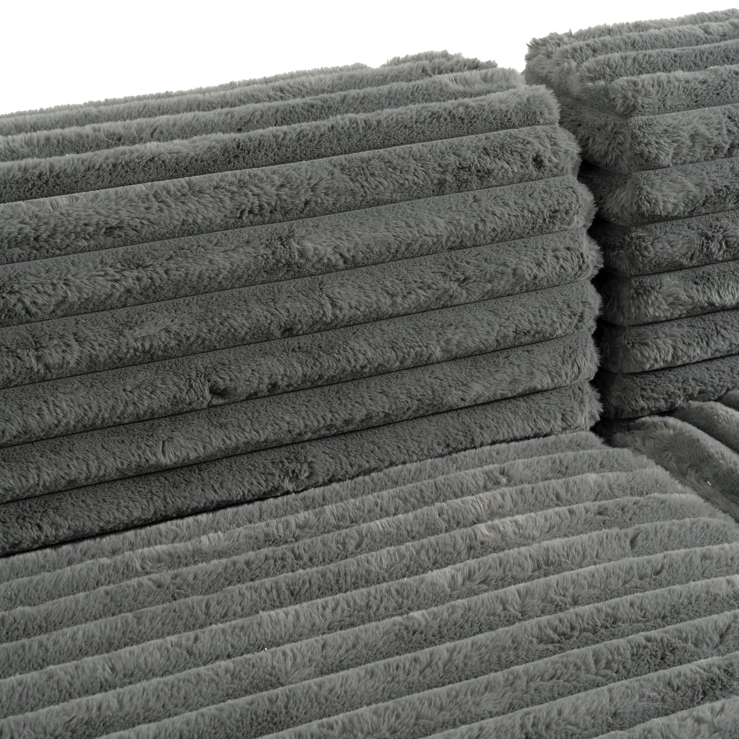 Cloud Sectional Sofa Upholstered Couch with Free-combined Design in Dark Gray Faux Rabbit Fur, 110'