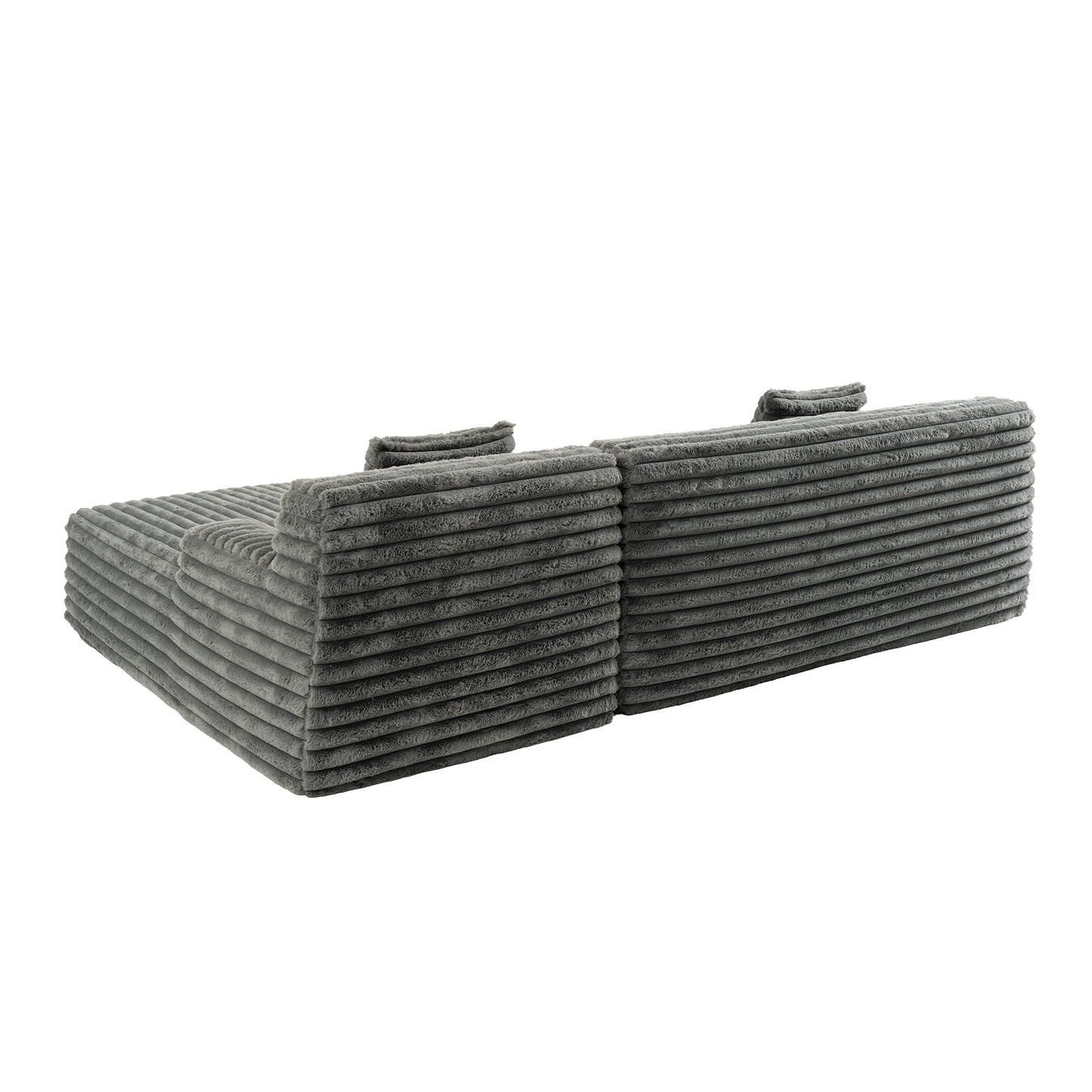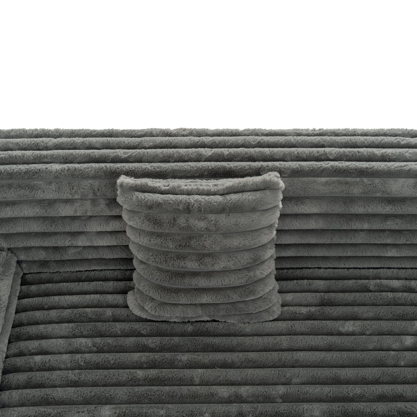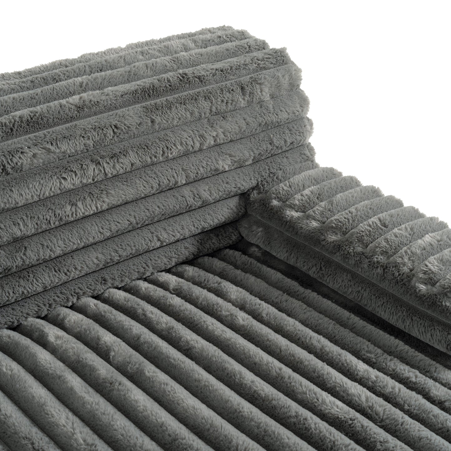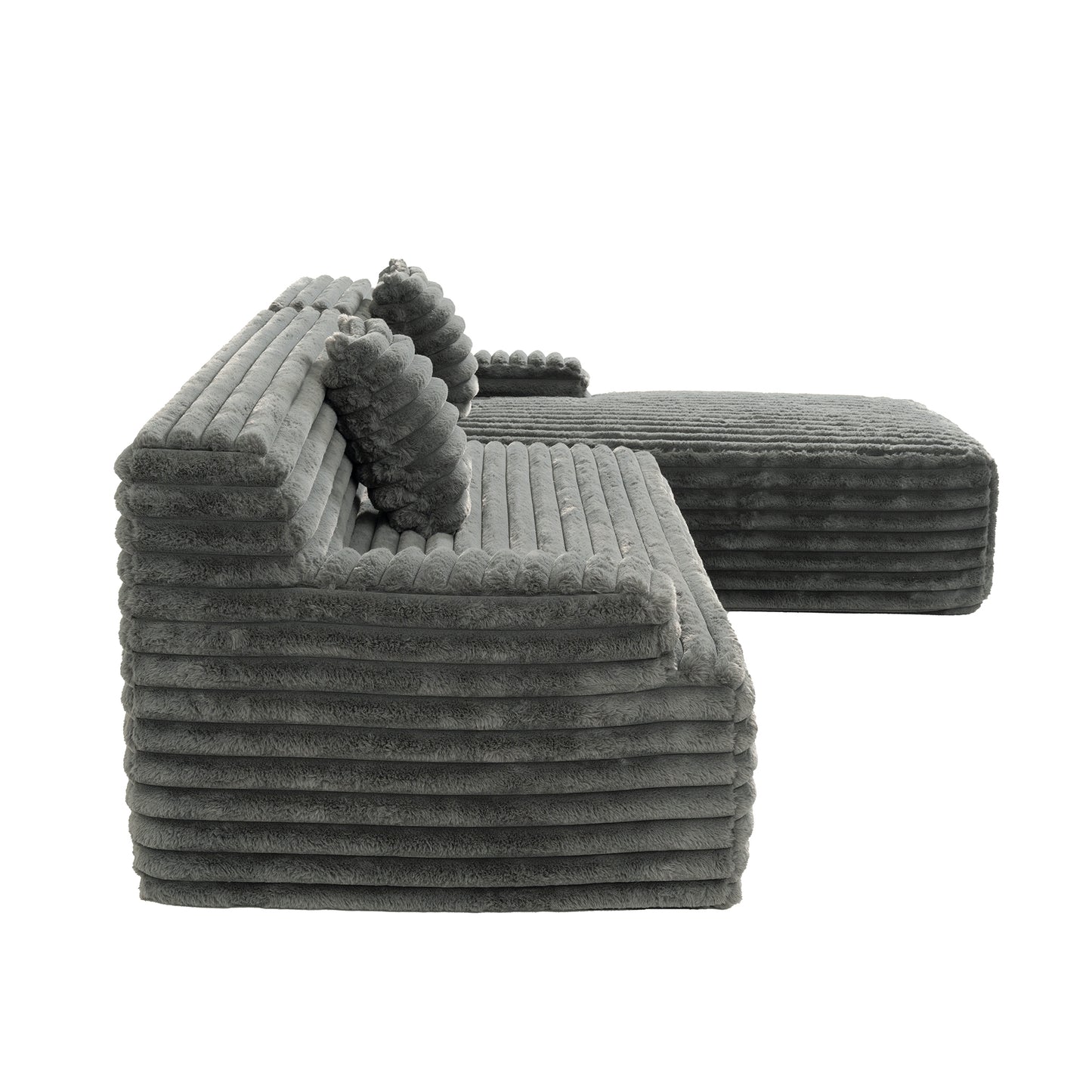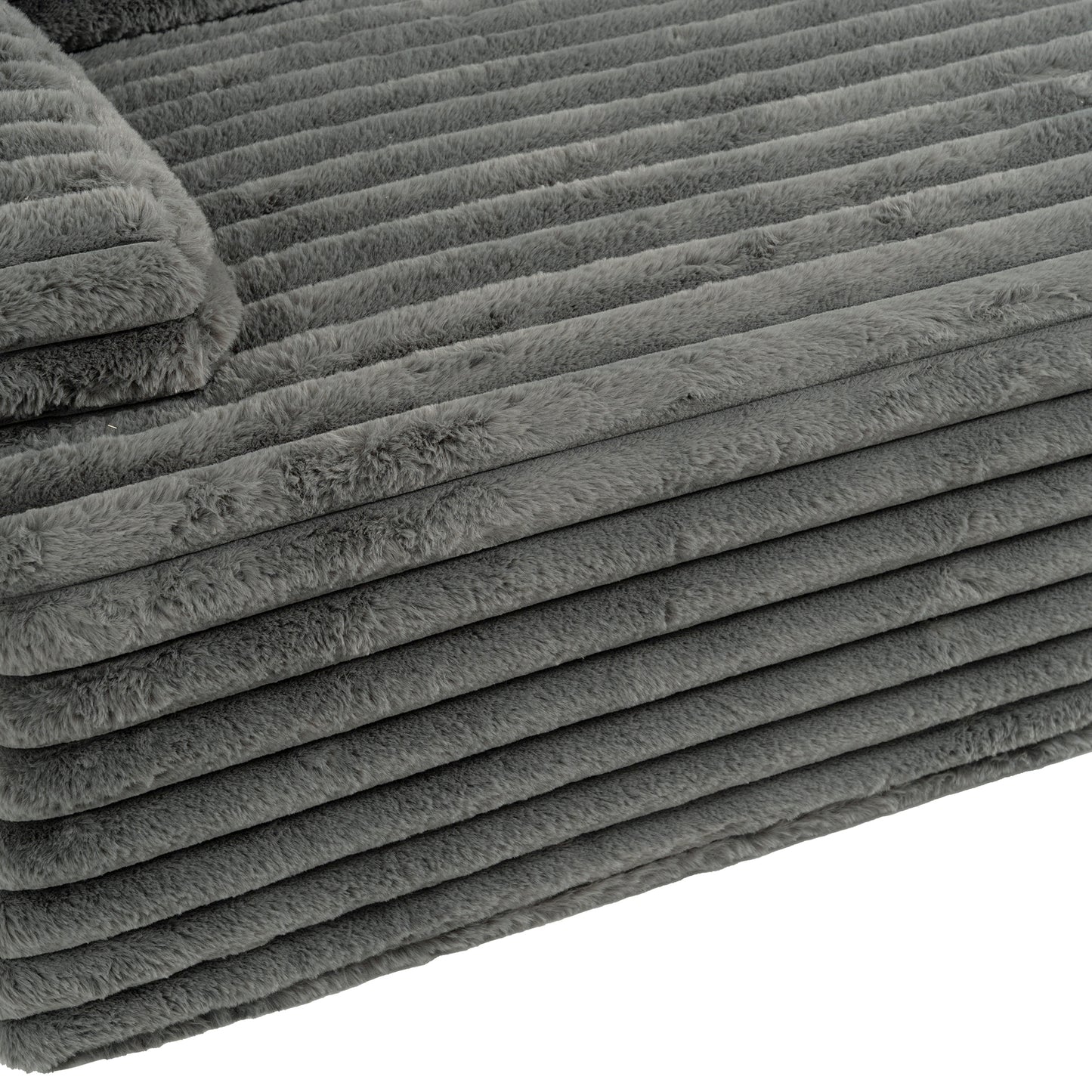 Cloud Sectional Sofa Upholstered Couch with Free-combined Design in Dark Gray Faux Rabbit Fur, 110'