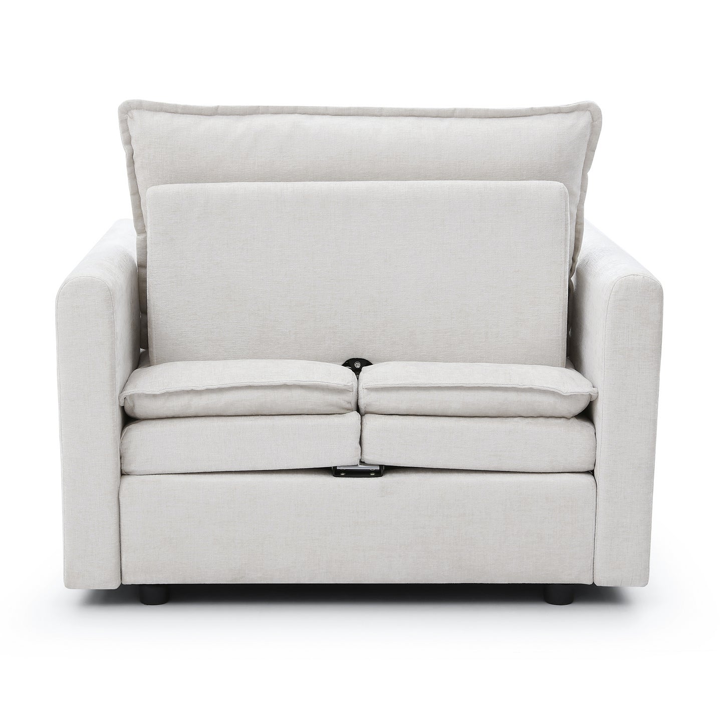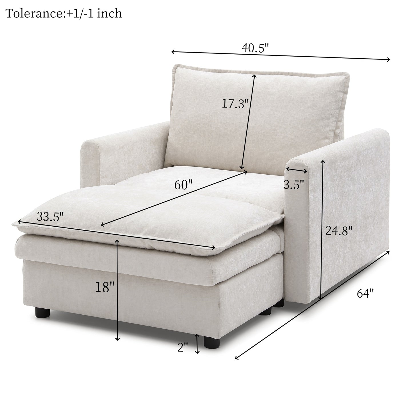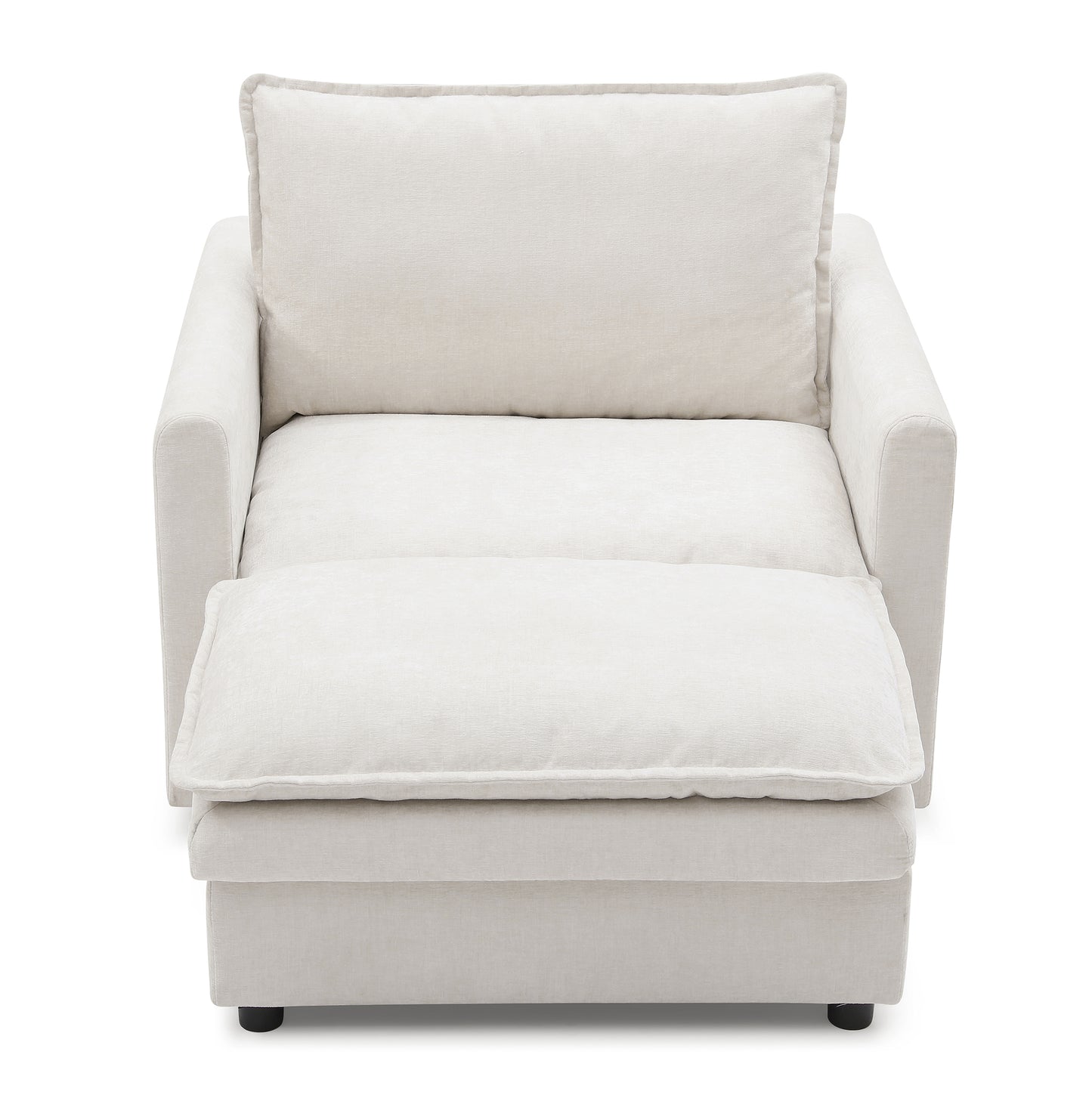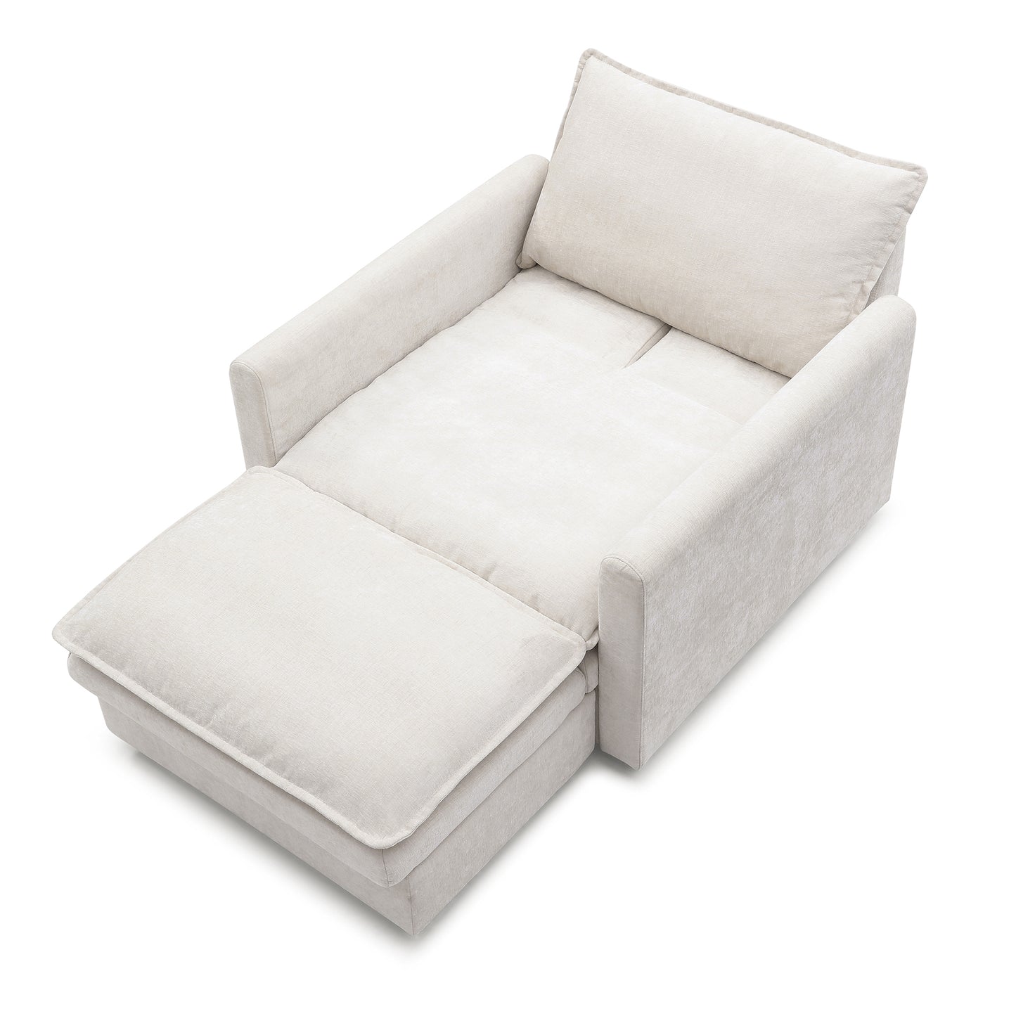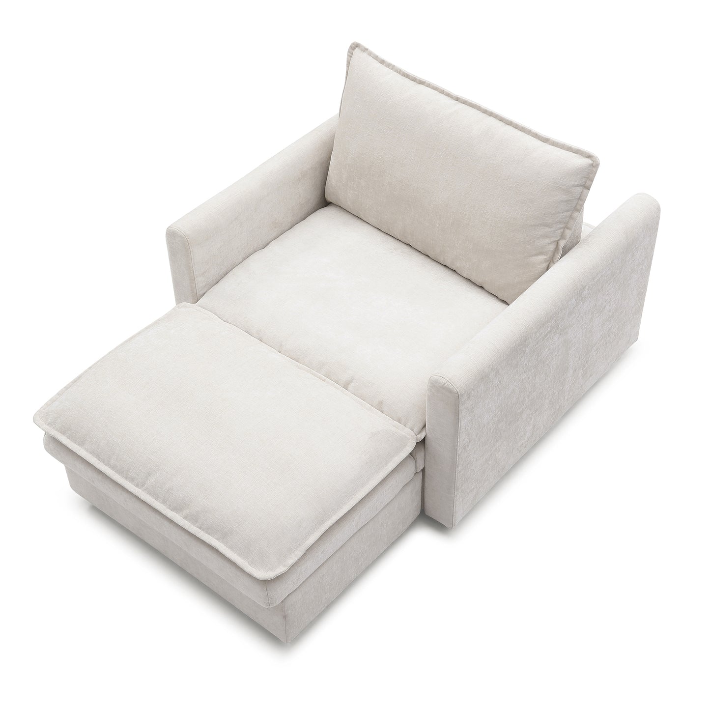 Chenille Sofa Bed, Modern Couch Cozy Lounge Chair for Reading, Upholstered Living Room Single Sofa Accent Chair with Ottoman (Beige, 1-Seat)