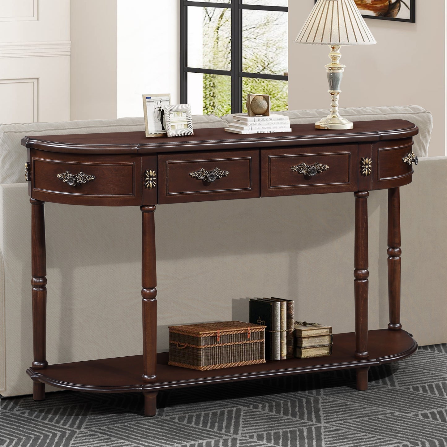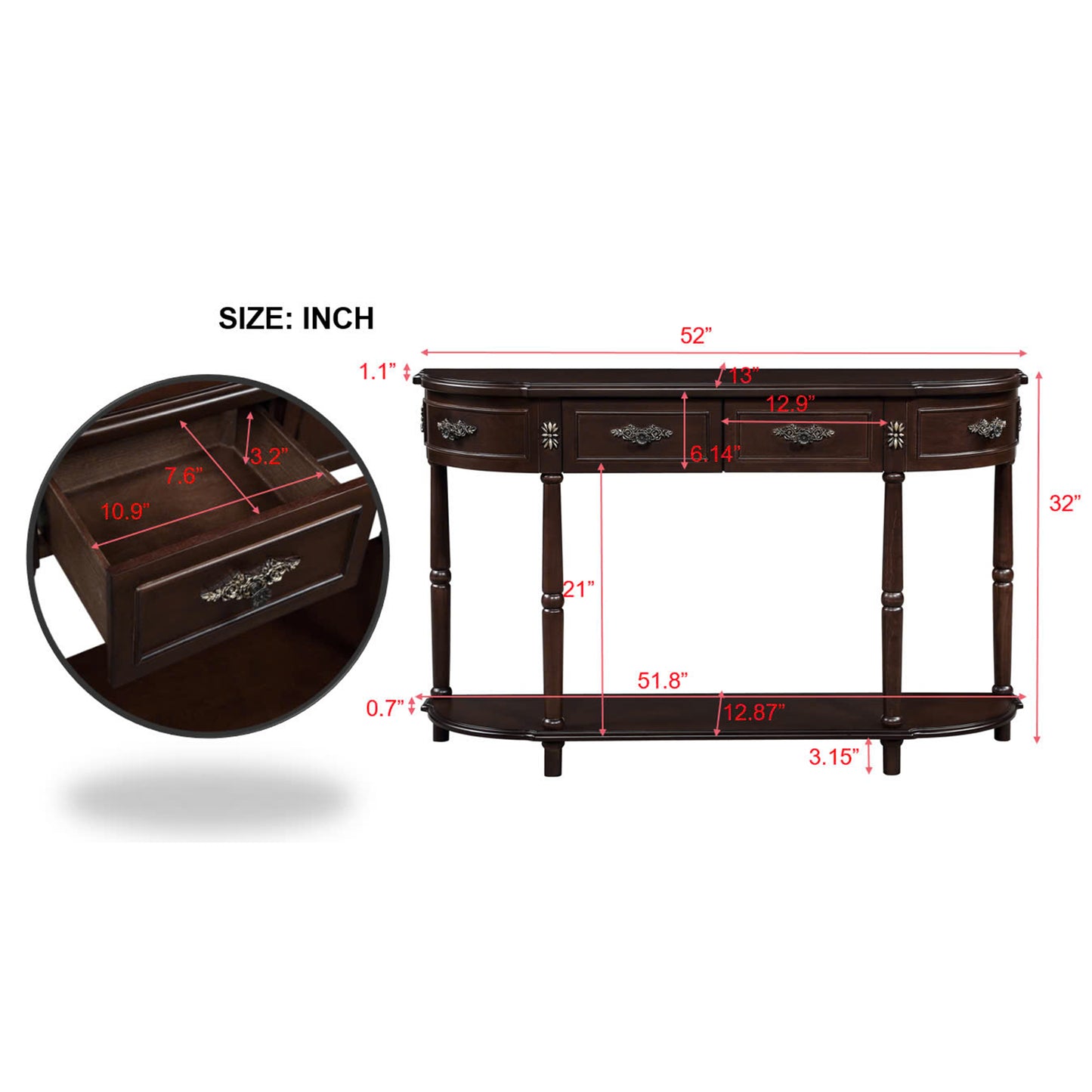 - 【Retro Style Console Table】:Our console table is retro style. The 4 Roman legs and the intricate carvings on the drawers give this table a classical-elegant charm that adds a touch of luxury to your room. You can use it as a commodity shelf to support daily essentials. You can also use it as a sofa table or a graceful book case to store books or magazines in hallway, entryway, bedroom, living room.