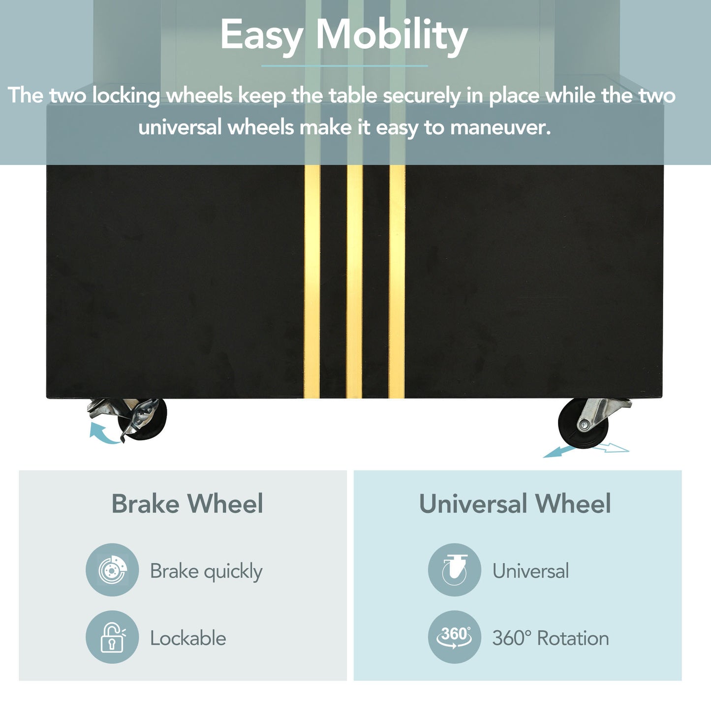 - One of the most convenient features is the caster wheels on the bottom, which allow you to easily move the table.