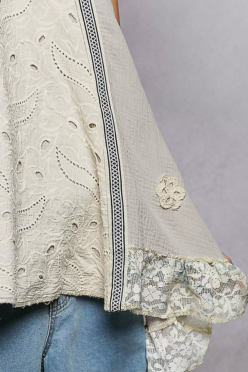 POL Lace Ruffle Halter Neck Double Gauze Top with Crochet Patch