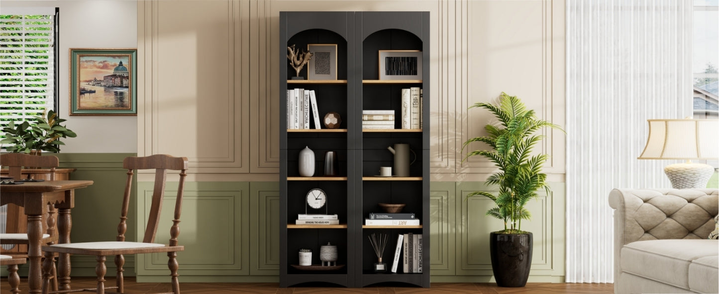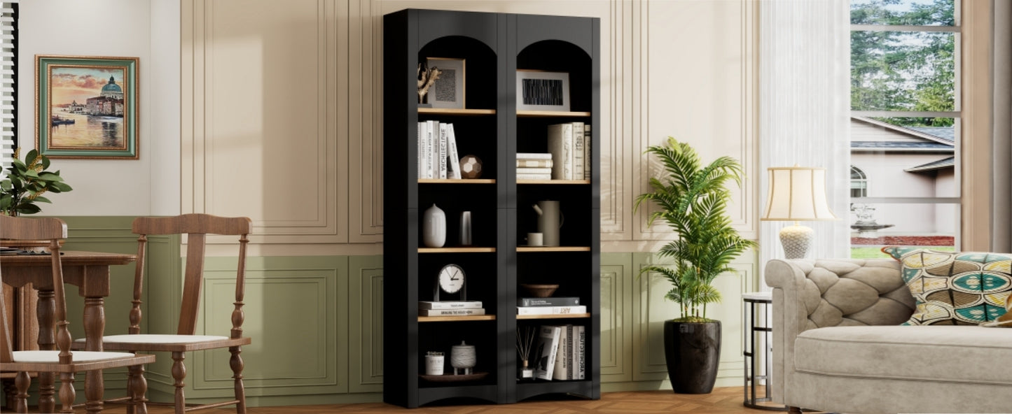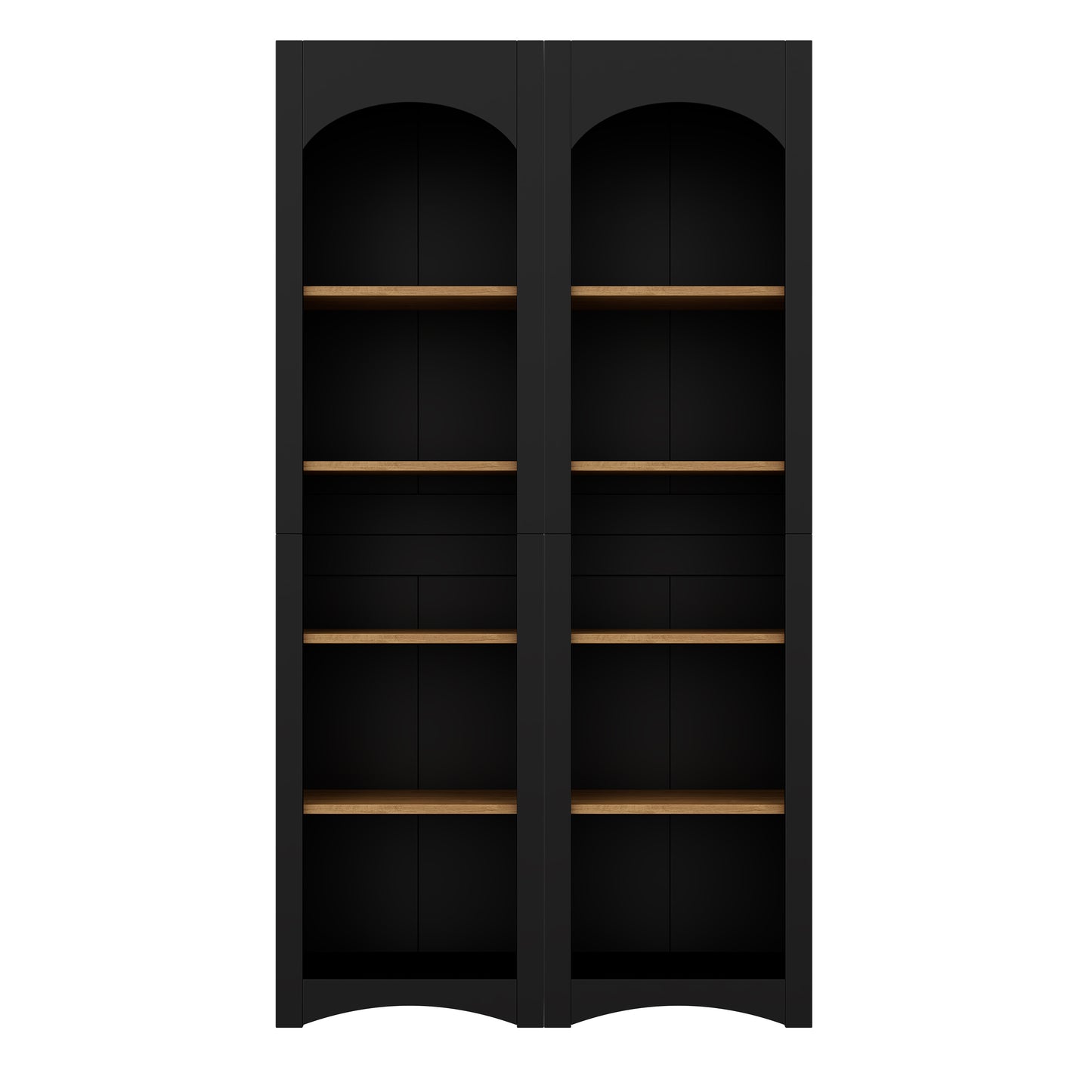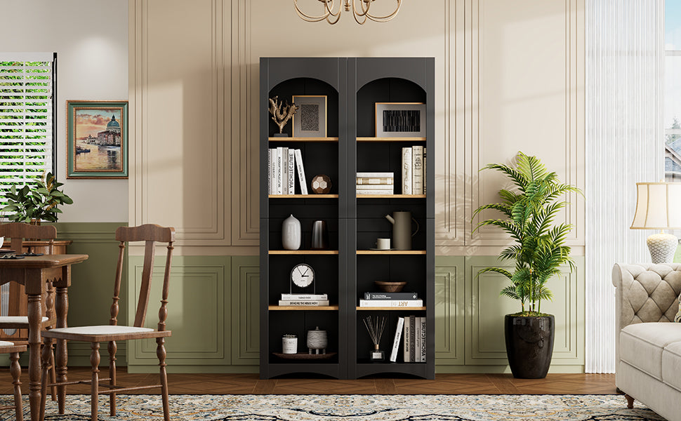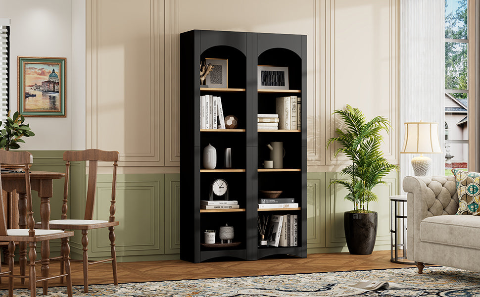 ON-TREND Free Standing 5 Tier Bookshelves, Bookcases Set of 2, Farmhouse Two-Tone Storage Cabinet with Adjustable Shelves, Modern 72'H Kitchen Pantry Cabinet for Living Room, Home Office, Black