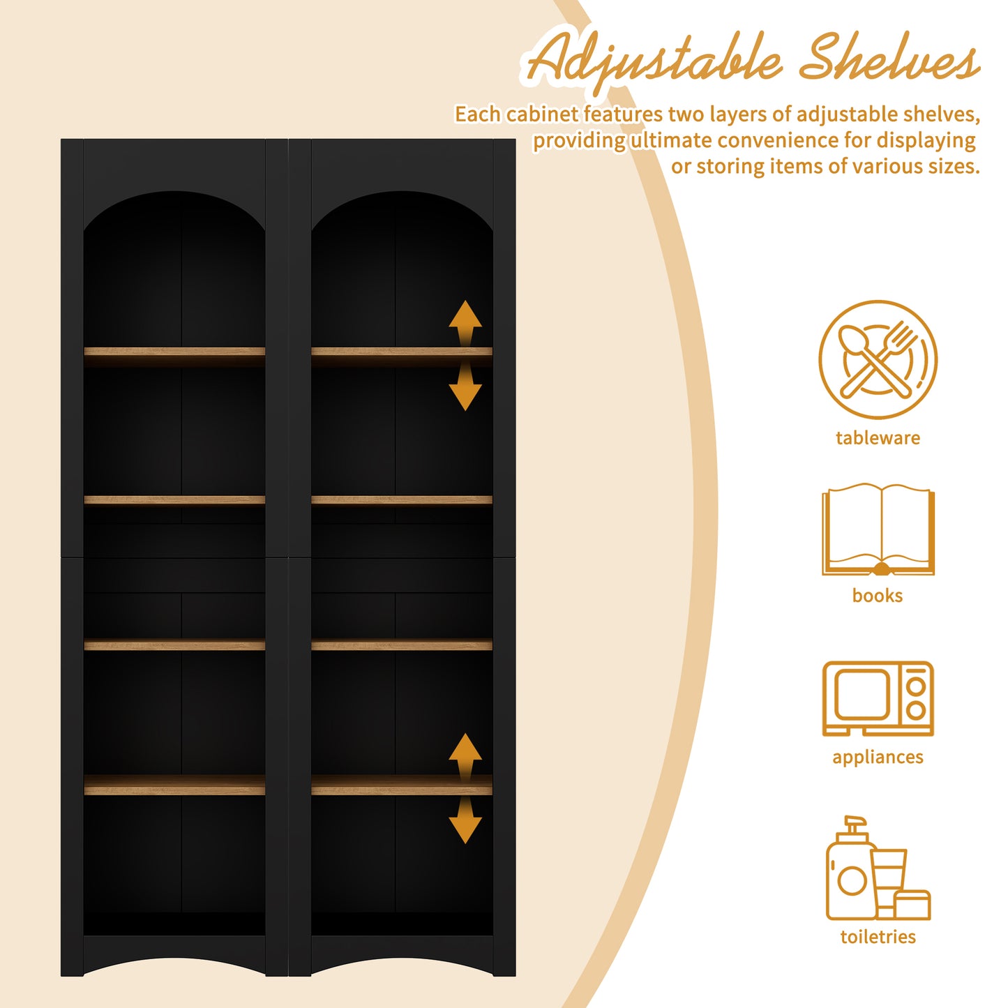 - Adjustable Shelves: Each cabinet features two layers of adjustable shelves, providing ultimate convenience for displaying or storing items of various sizes. The open-space design allows you to keep your belongings easily accessible. You can use to accommodate tableware, books, appliances, toiletries, or anything you like.
