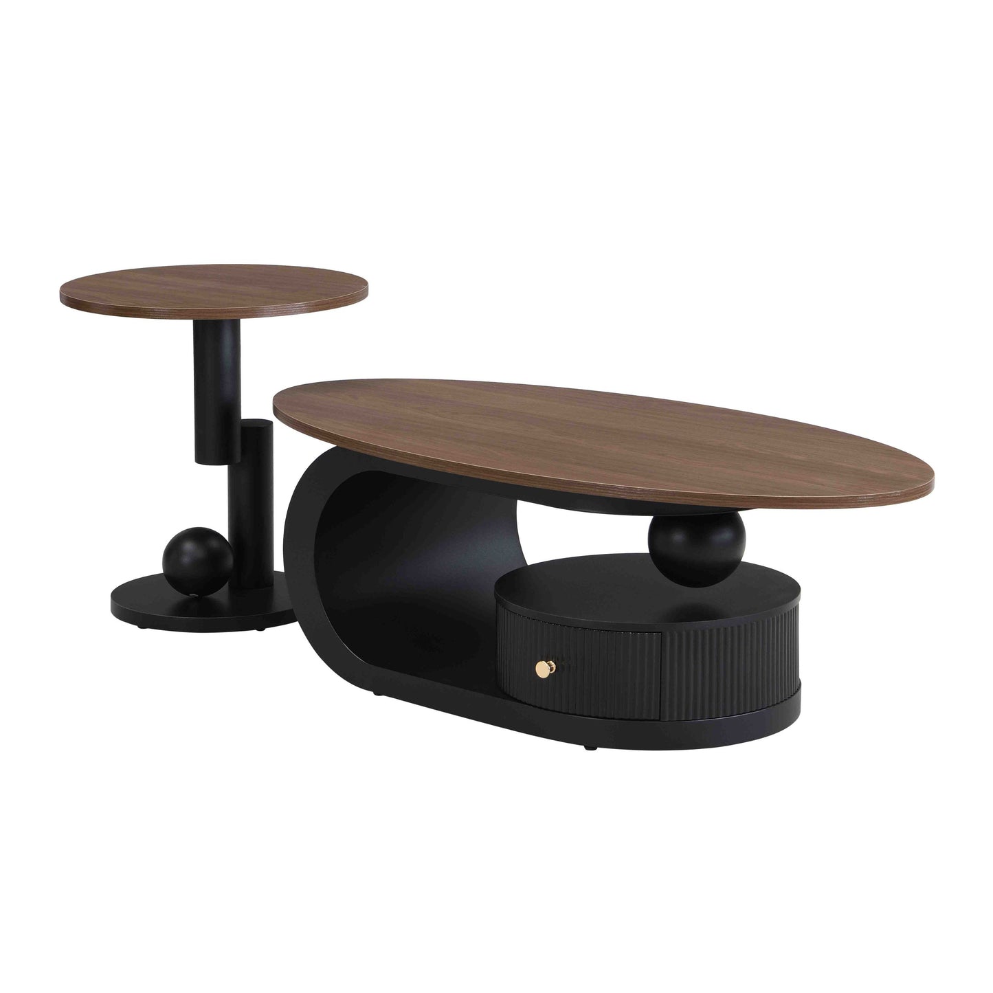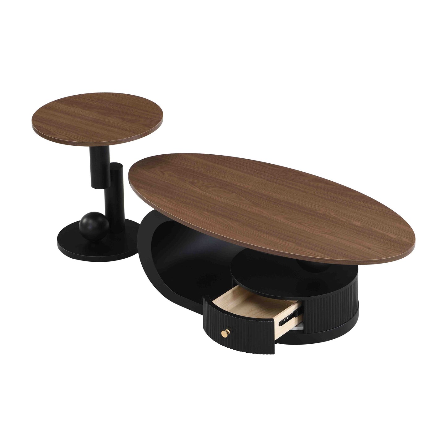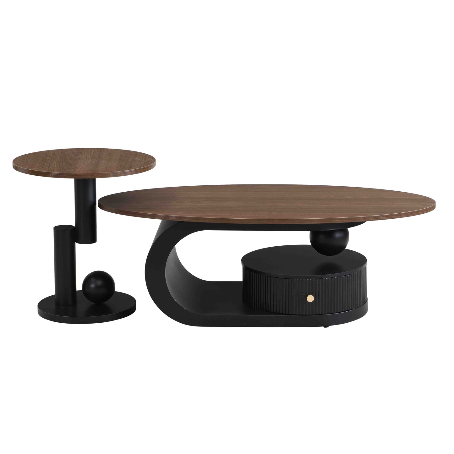- 2. Combine as you Like: Our 2-piece coffee table set includes one large oval coffee table and one small round side table, you can use them in combination or individually. The flexible combination allows for a more flexible arrangement of furniture.
