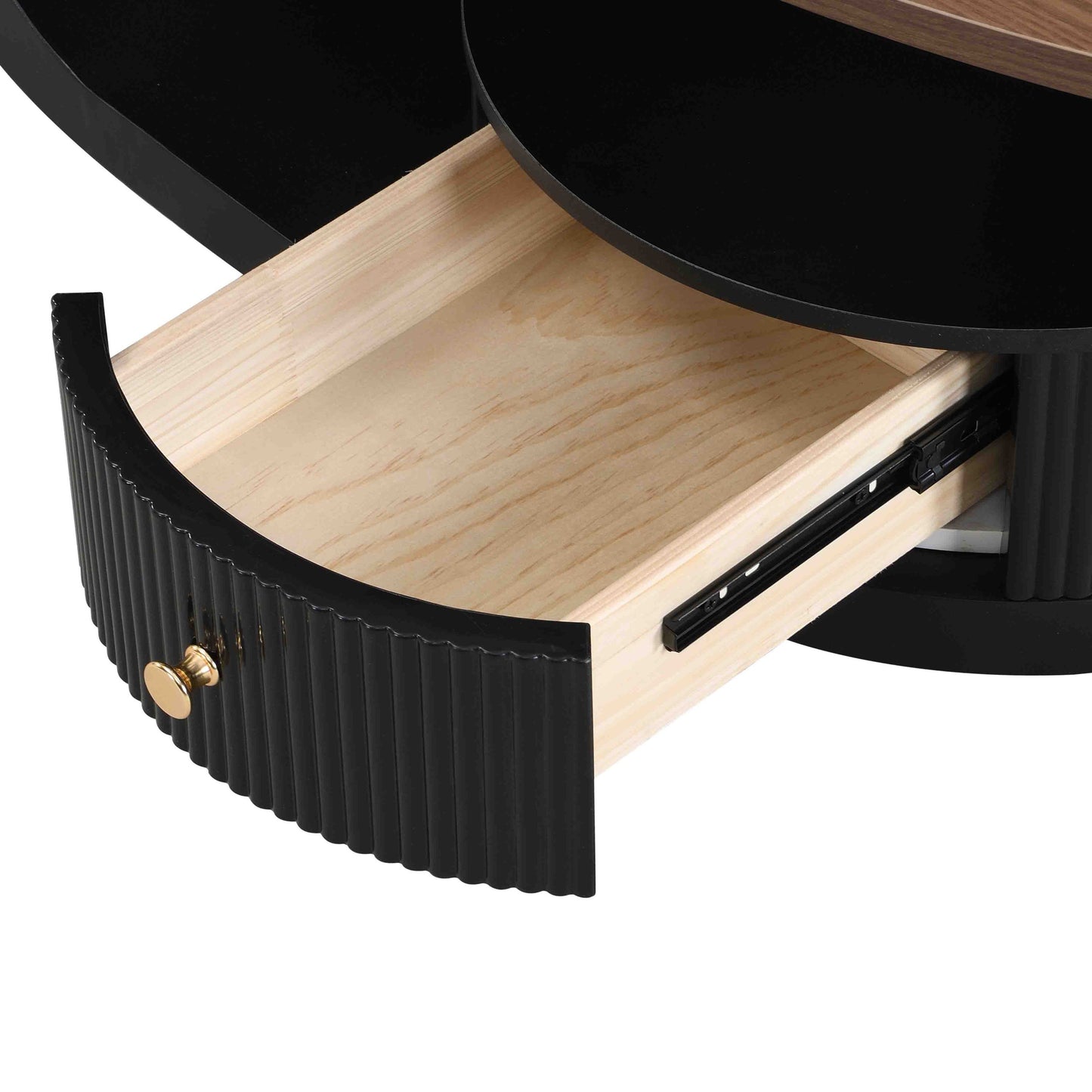 Luxury Nesting Coffee Table Set of 2, Tables with Storage for Living Room, Oval and Round Table Set, Black Center Table, Cocktail Table, Side Table, Large 47.24'', Small 19.69''