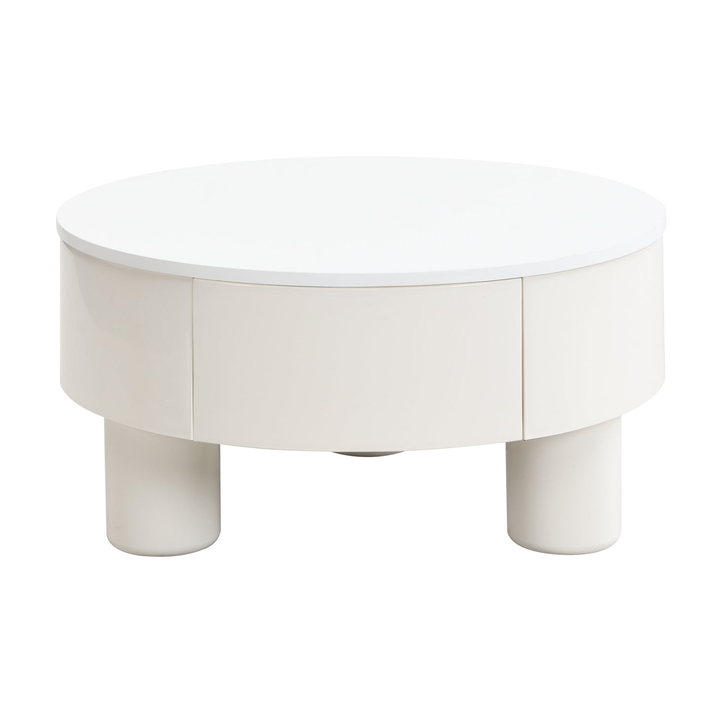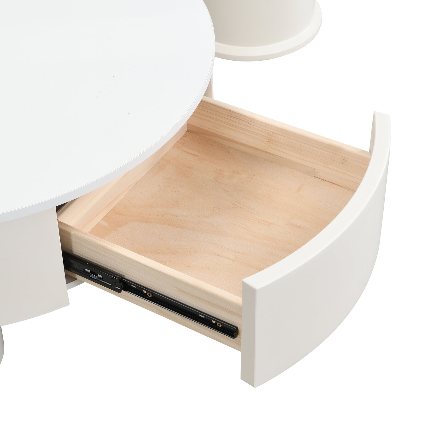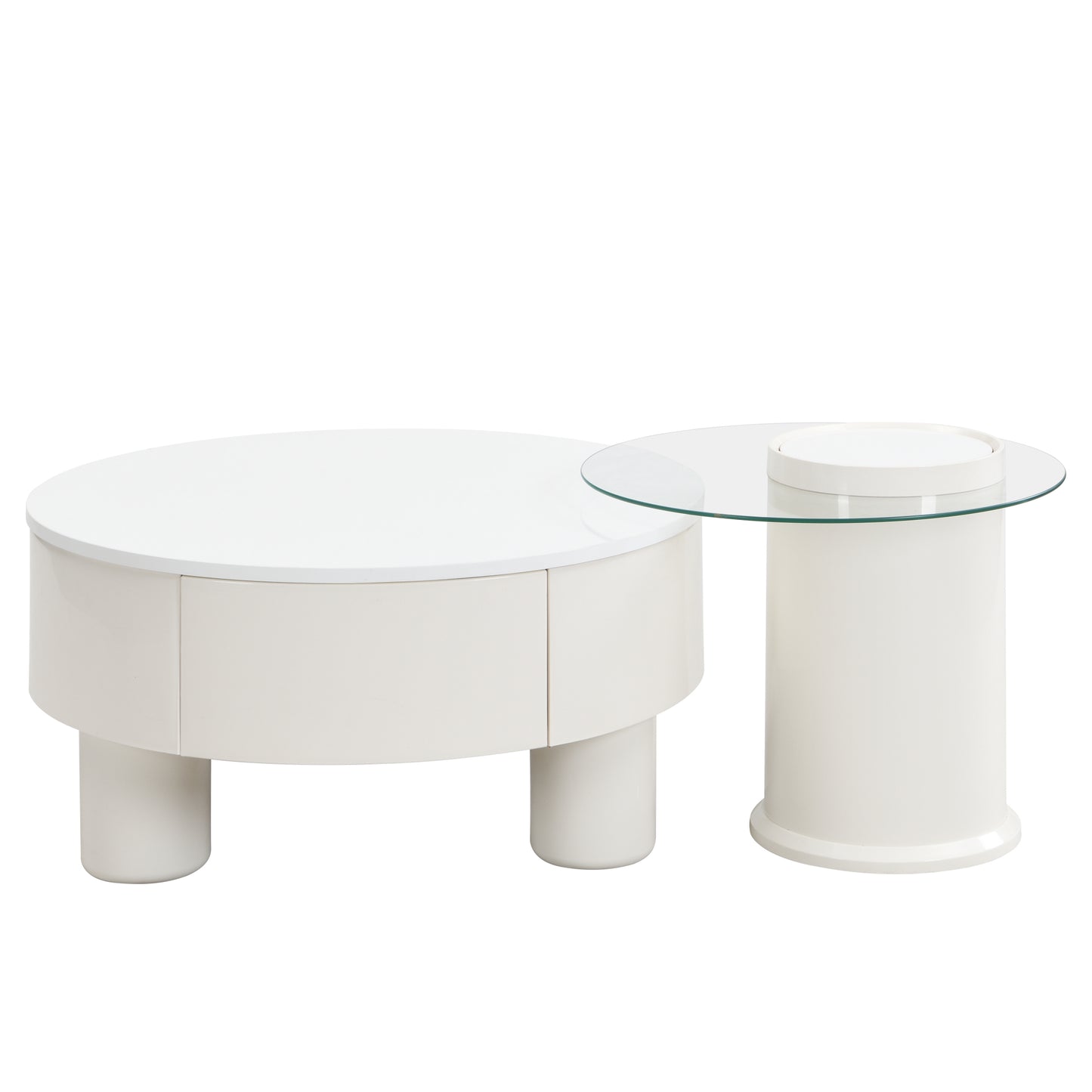 Round Nesting Coffee Table Set of 2, Coffee Table with Storage Drawer, White Plastic Center Table for Living Room, Large 27.56'', Small 19.69''