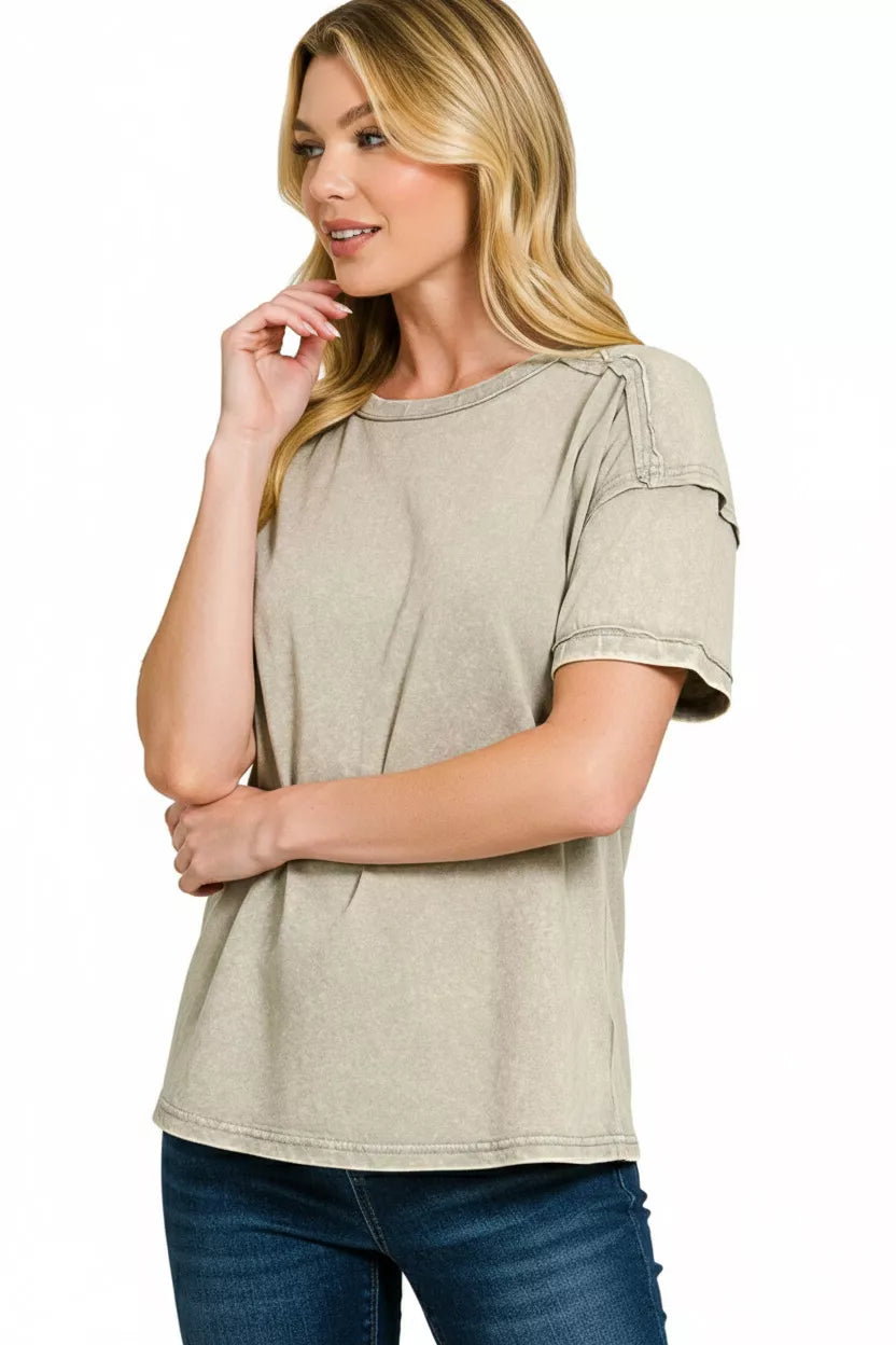 Zenana Acid Washed Round Neck T-shirts