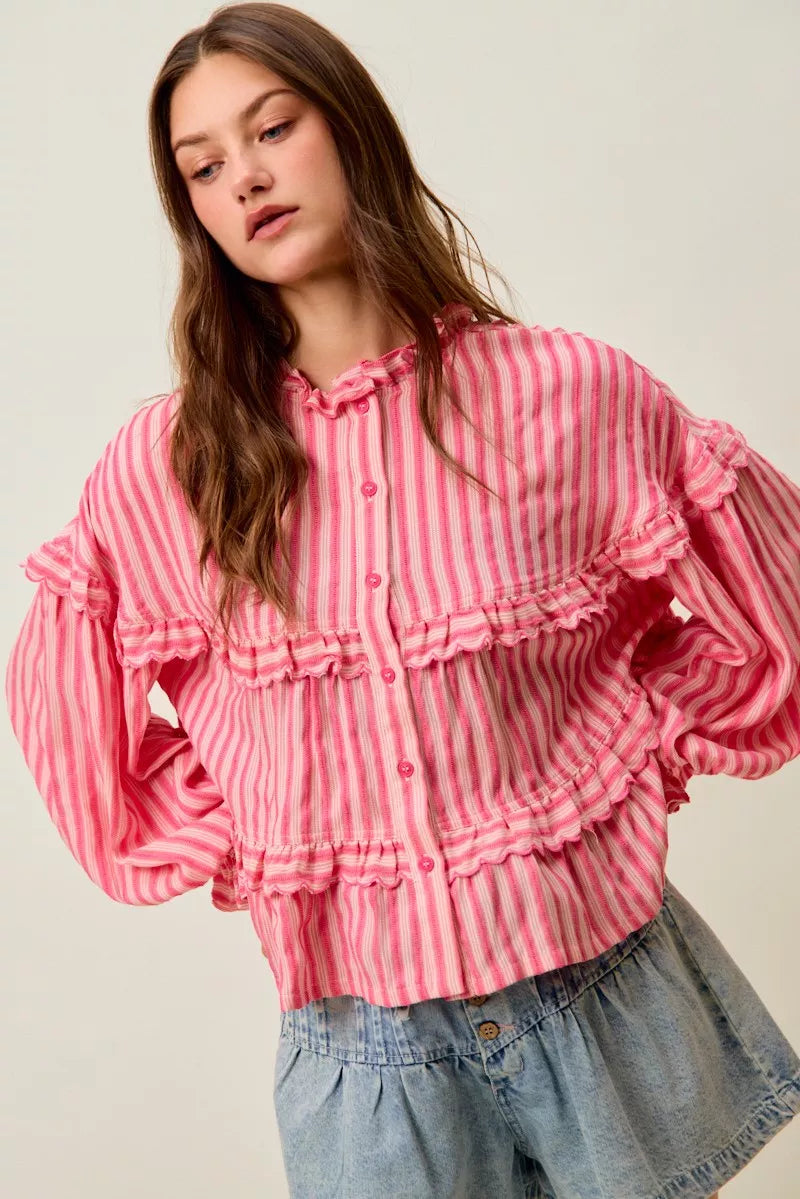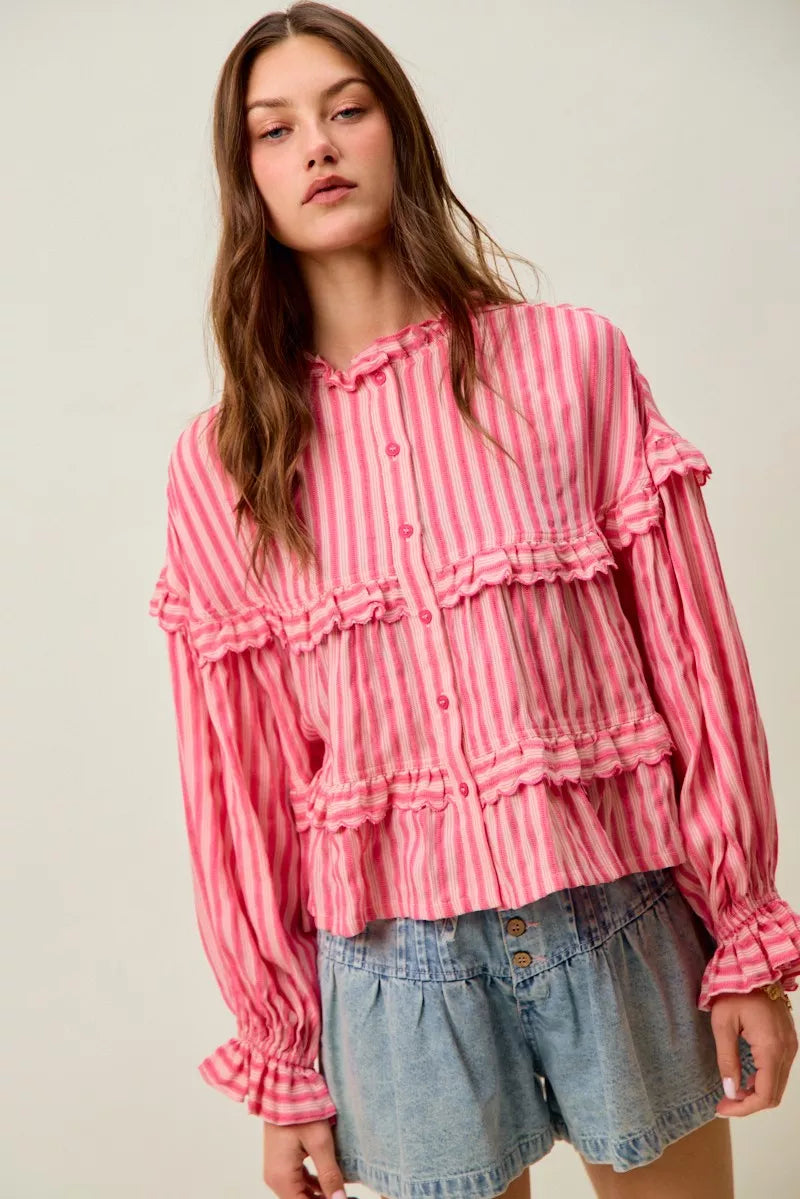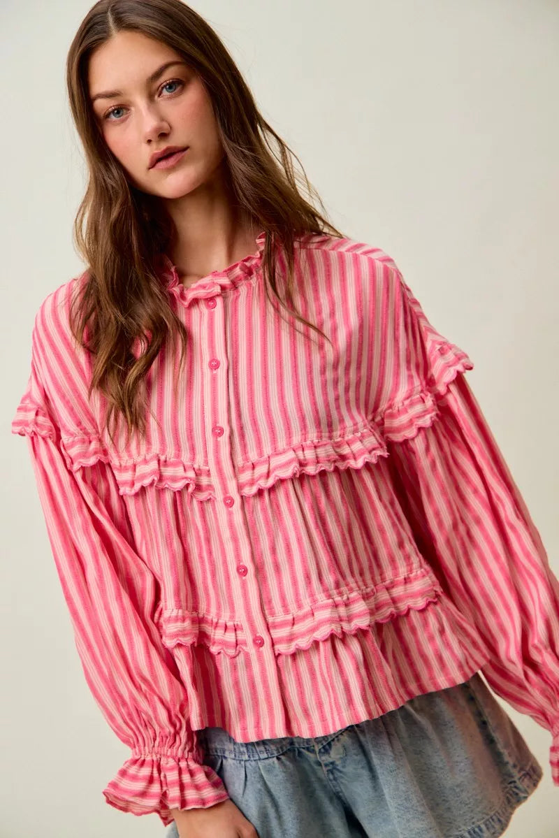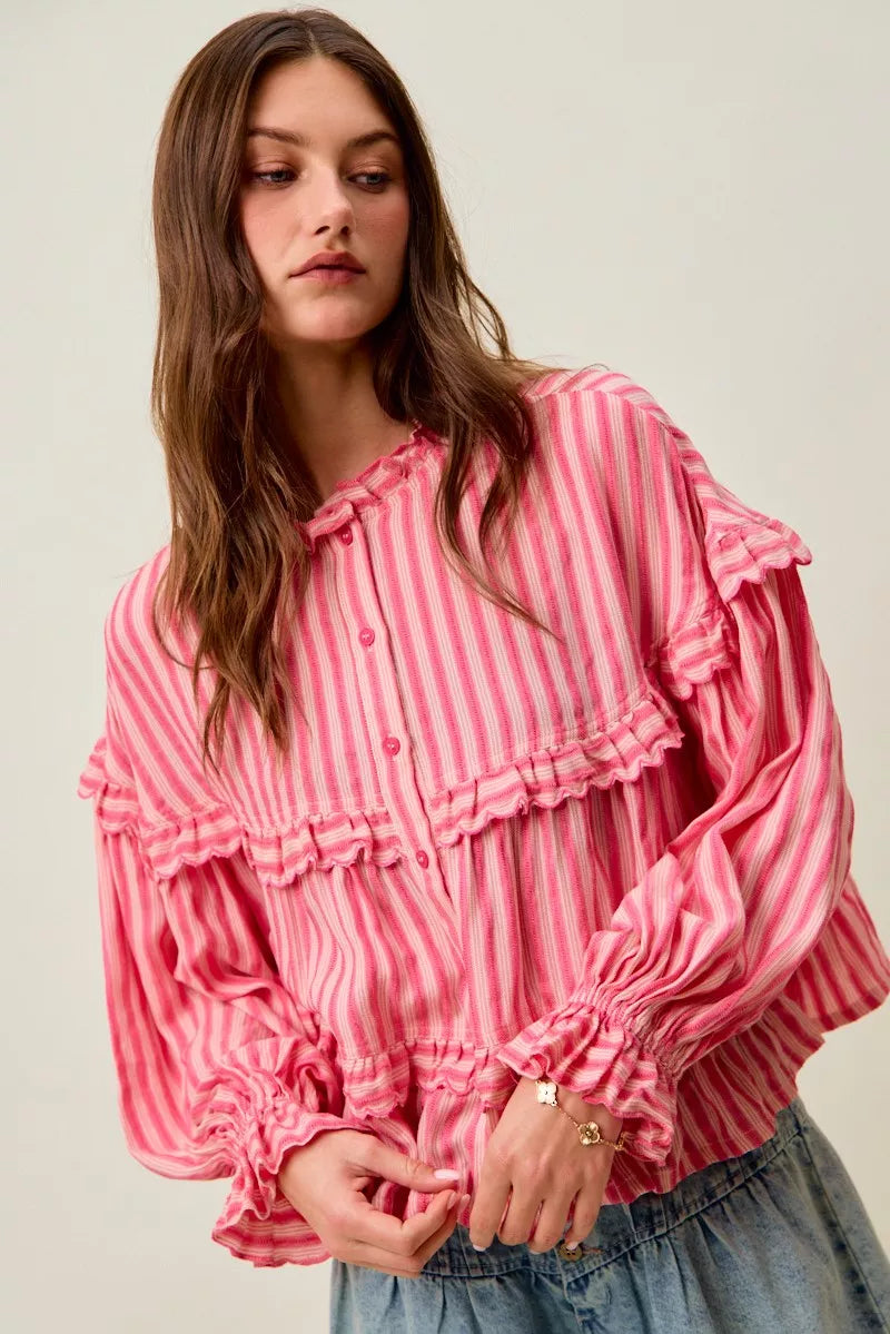 SO ME Variegated Stripe Reversible Flowy Boho Blouse