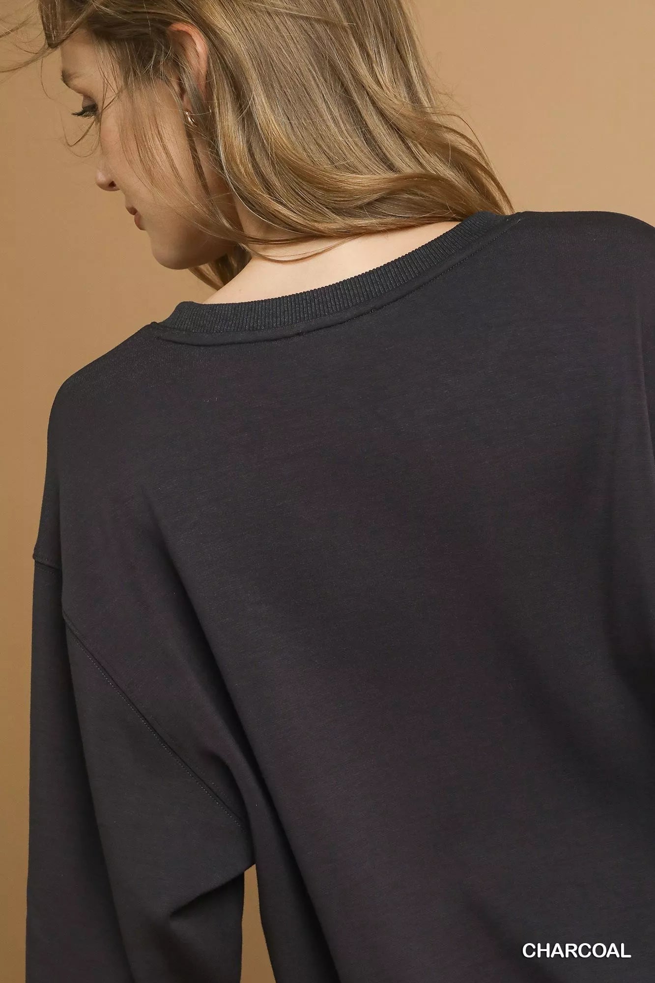 Umgee Round Neck Long Sleeve Fleece Sweatshirt