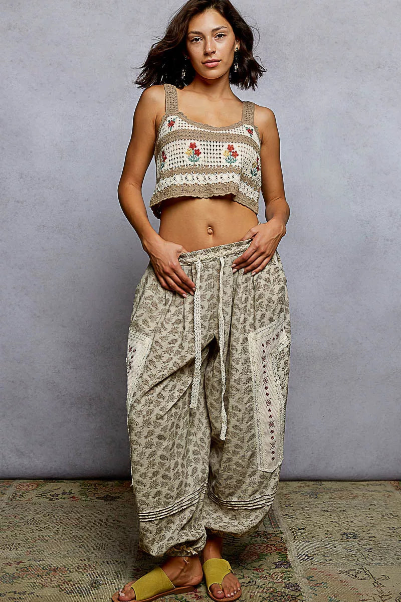 POL Floral Embroidered Cropped Crochet Cami with Scalloped Hem