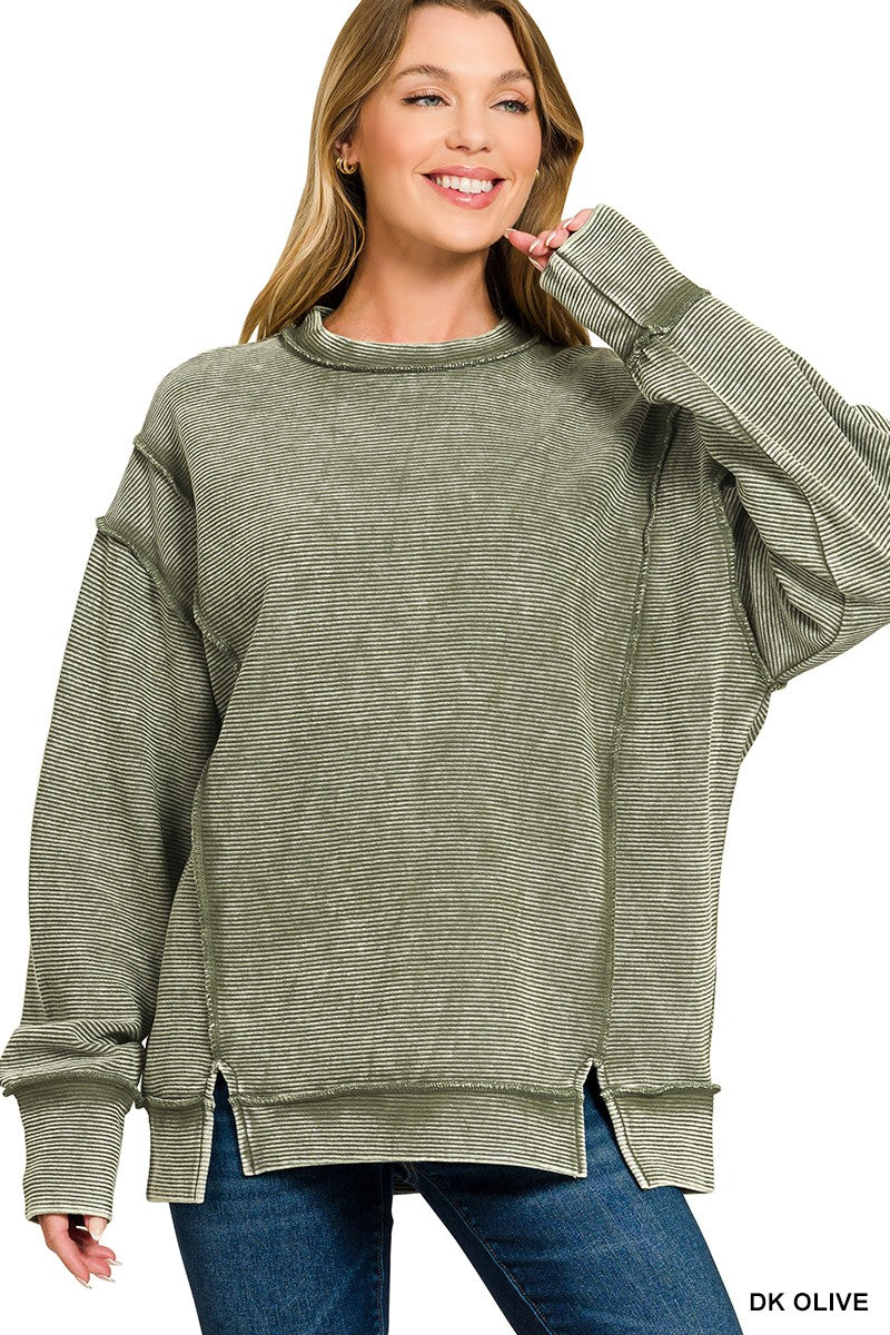 Zenana Acid Washed Double Ribbed Exposed-Seam Sweatshirt