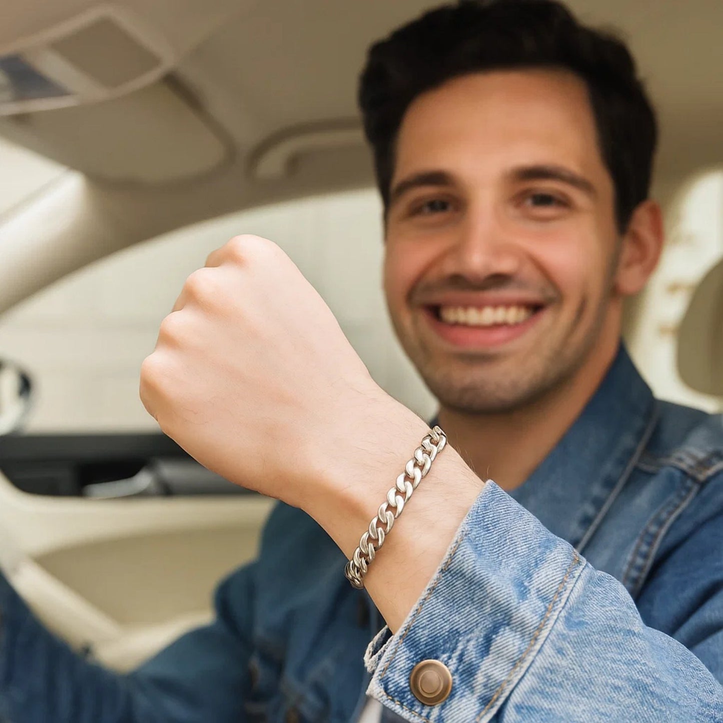 This Miami cuban semi solid bracelet comes in 14k white gold and has a width of 6.7 millimeters. Secured with a lobster clasp.