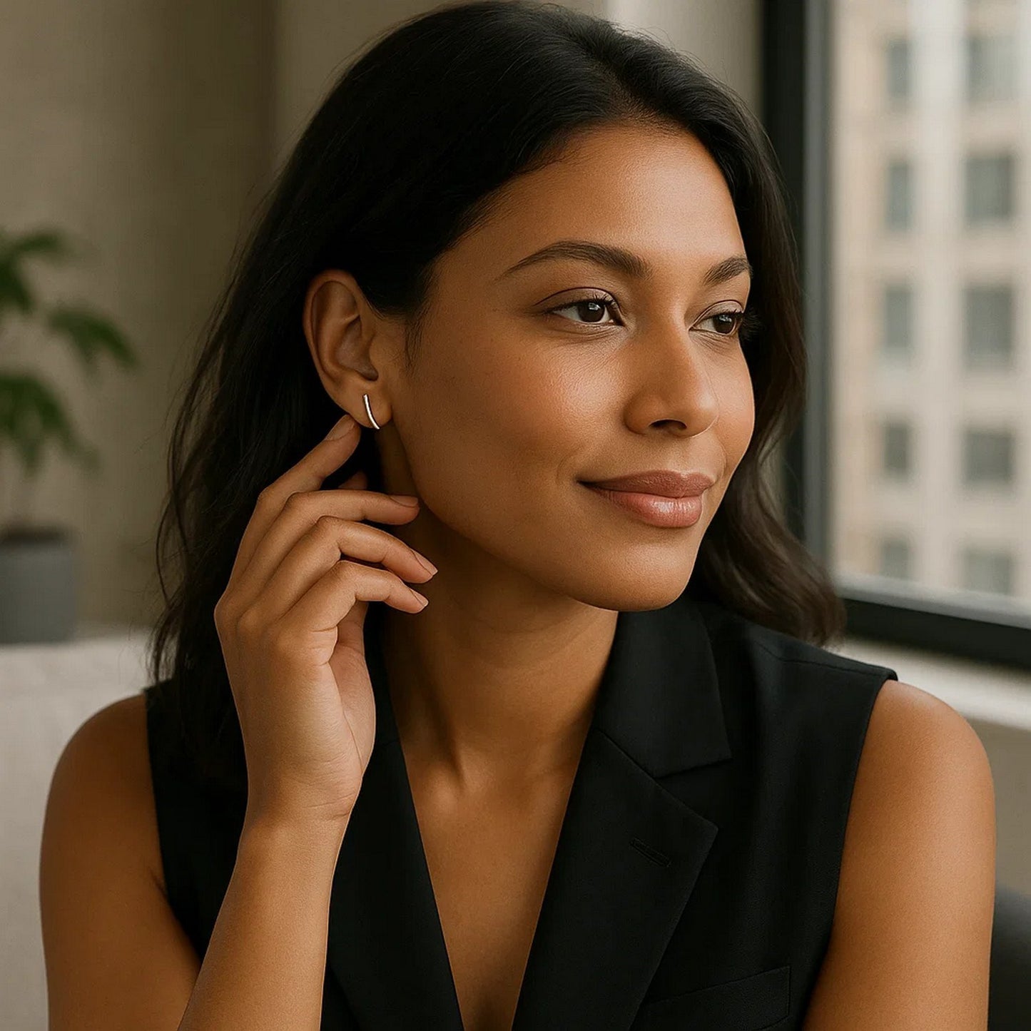 The timeless elegance of a polished, slightly curved bar meets the modern "ear climber" trend in these dramatic 14k white gold post earrings. Post earrings are held in place by pushback clasps.