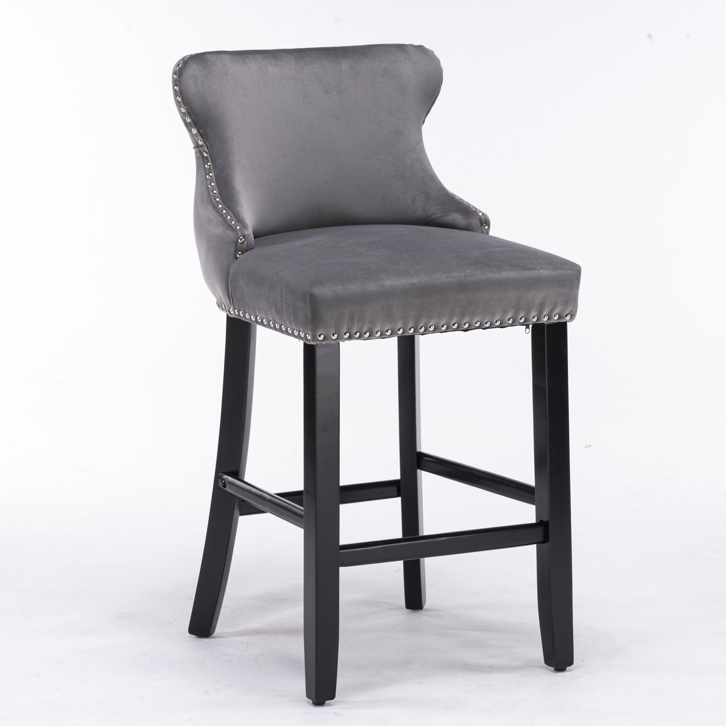 A&A Furniture,Contemporary Velvet Upholstered Wing-Back Barstools with Button Tufted Decoration and Wooden Legs, and Chrome Nailhead Trim, Leisure Style Bar Chairs,Bar stools, Set of 2 (Gray),SW1824GY