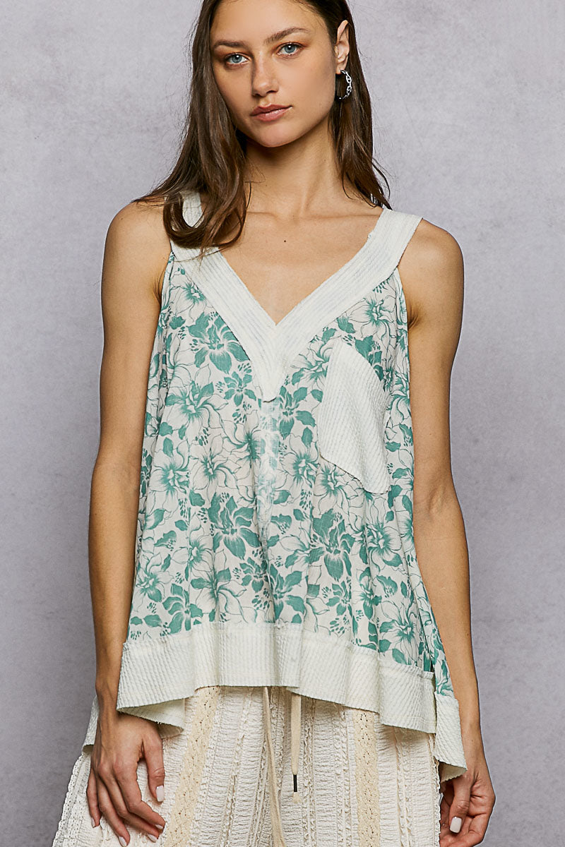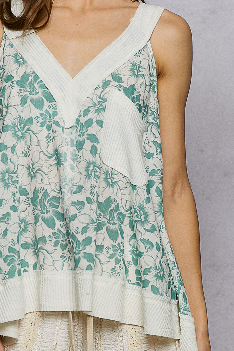 POL Floral V-Neck Tank with Front Pocket