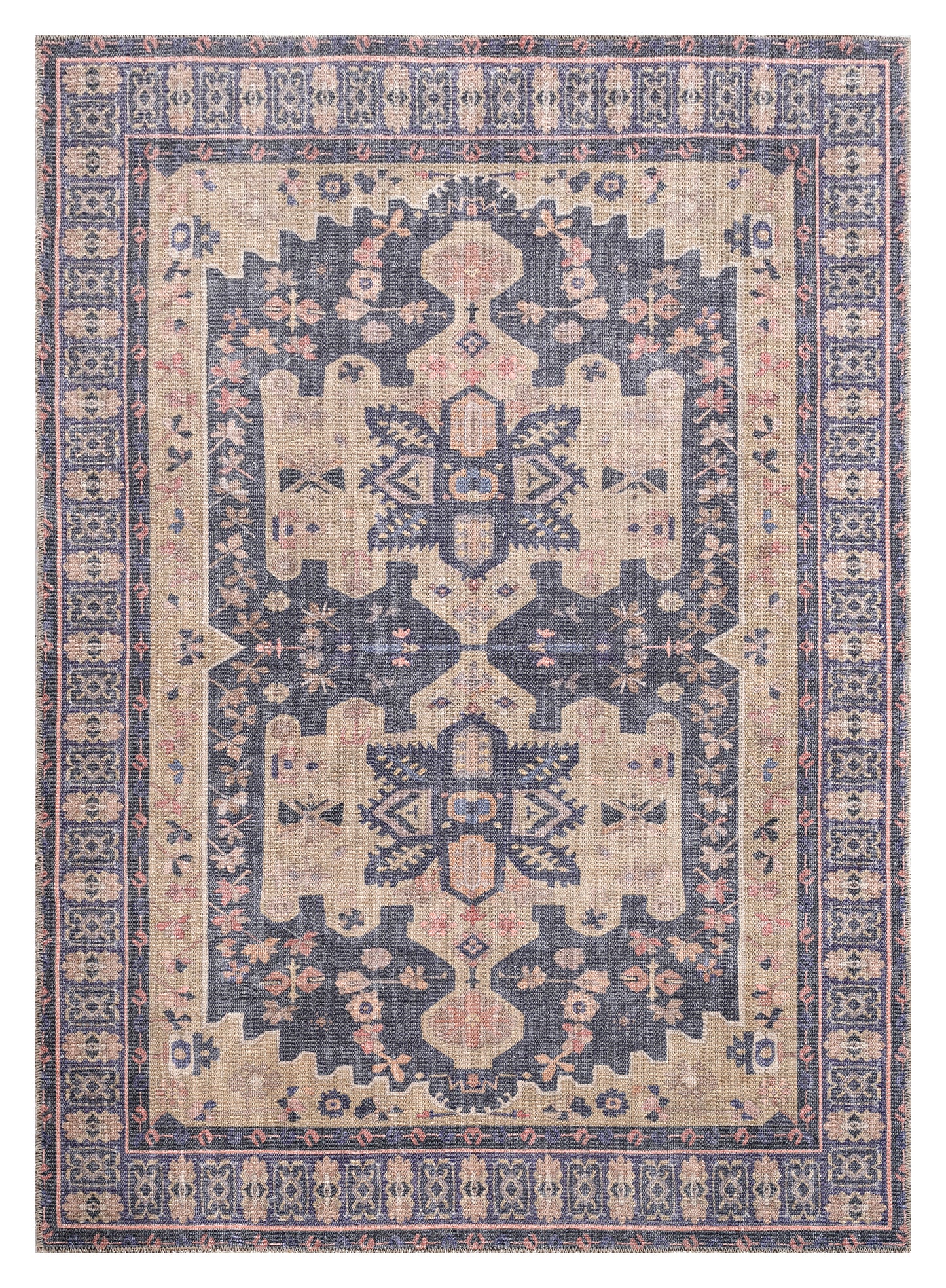 Traditional, Transitional, Oriental, Medallion, Border, Distressed Textured Cut and Loop Pile 7'6' x 10' Rectangle Area Rug