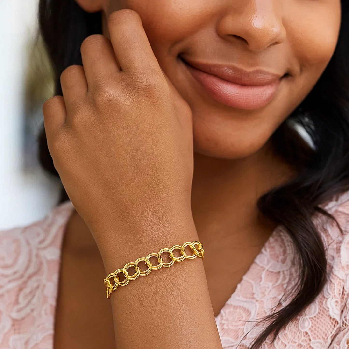 14k Yellow Gold Solid Double Link Charm Bracelet (7.00 mm)