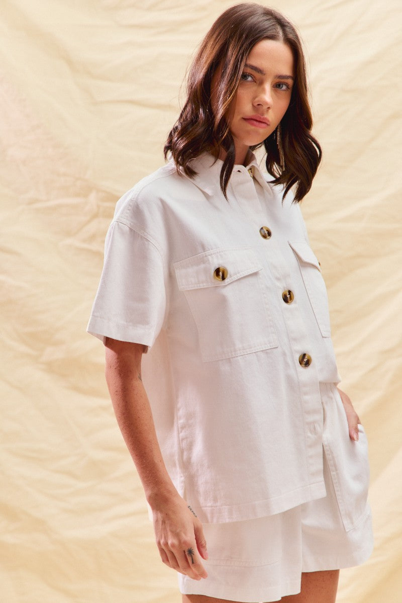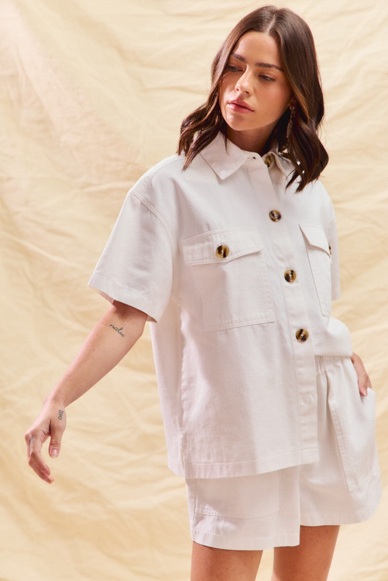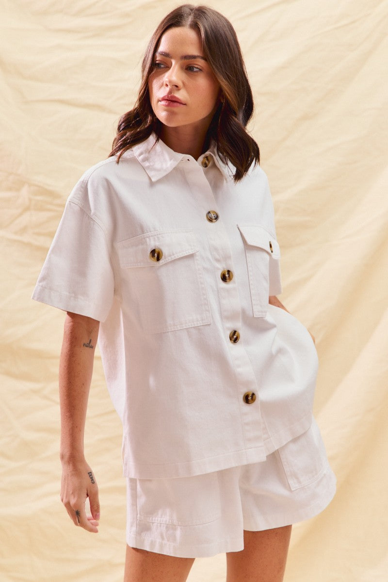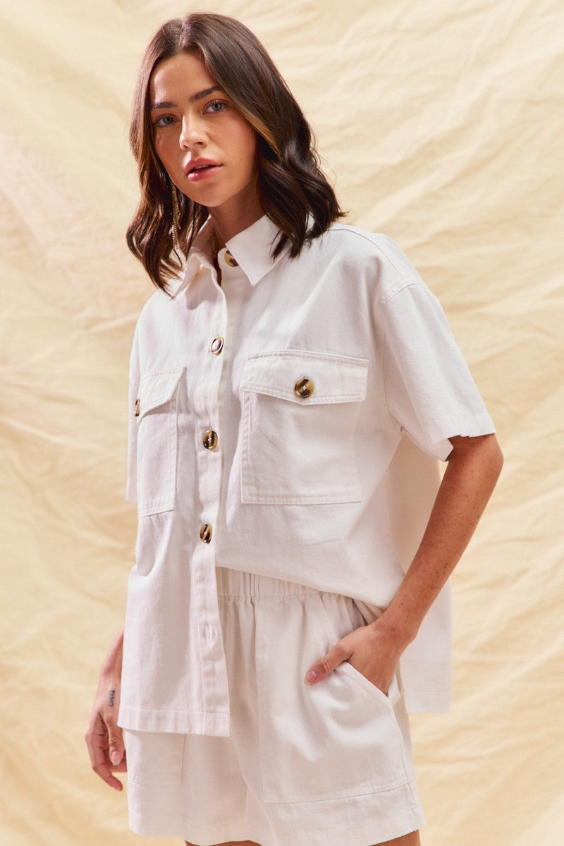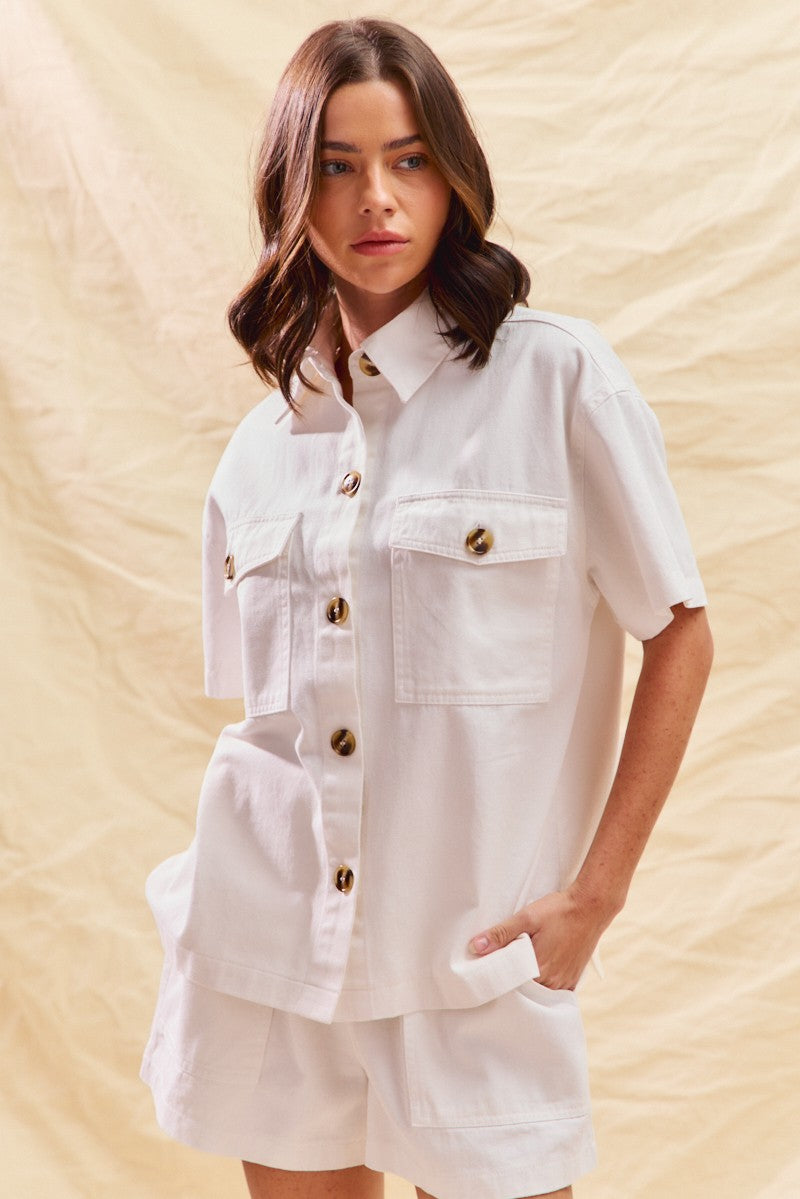SO ME Button Down Denim Game Day Top and Shorts Set