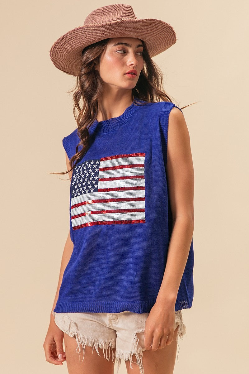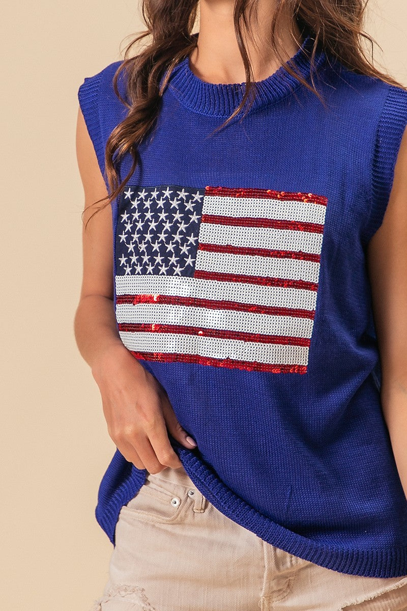 Add a touch of patriotic sparkle to your outfit with the American Flag Sequins Patch Knit Vest. This eye-catching vest features a sequined American flag patch that adds a fun and festive element to your look. Perfect for celebrating special occasions, holidays, or showing off your patriotic spirit. The knit construction ensures comfort and versatility, making it easy to layer over tops or dresses. Stand out in style and make a statement with this unique and trendy knit vest.