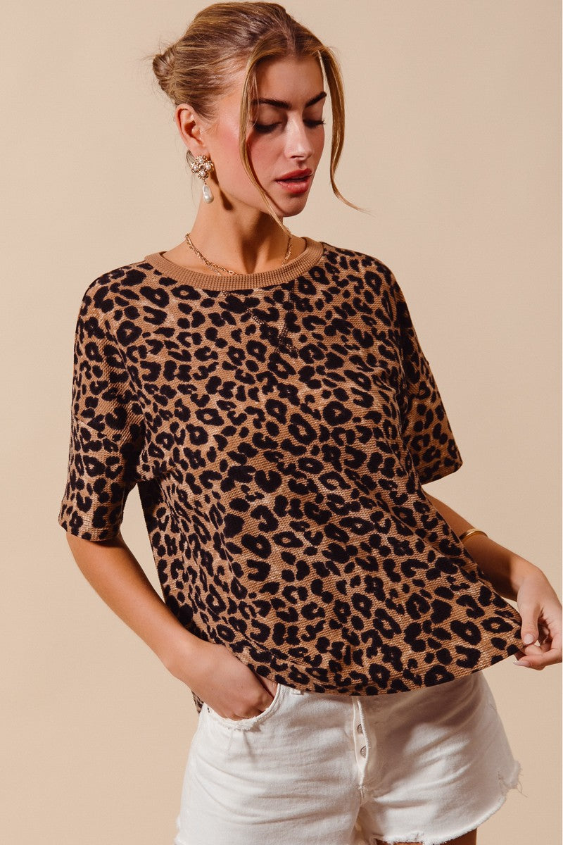 SO ME Leopard Thermal Waffle Knit Loose Fit Top