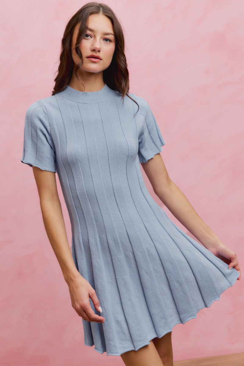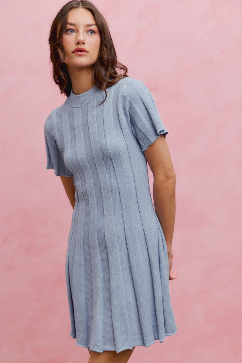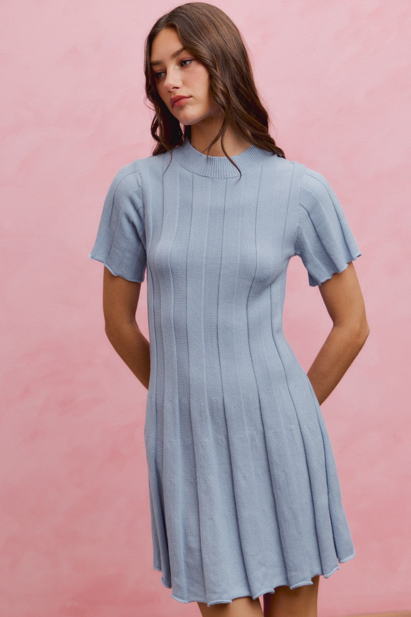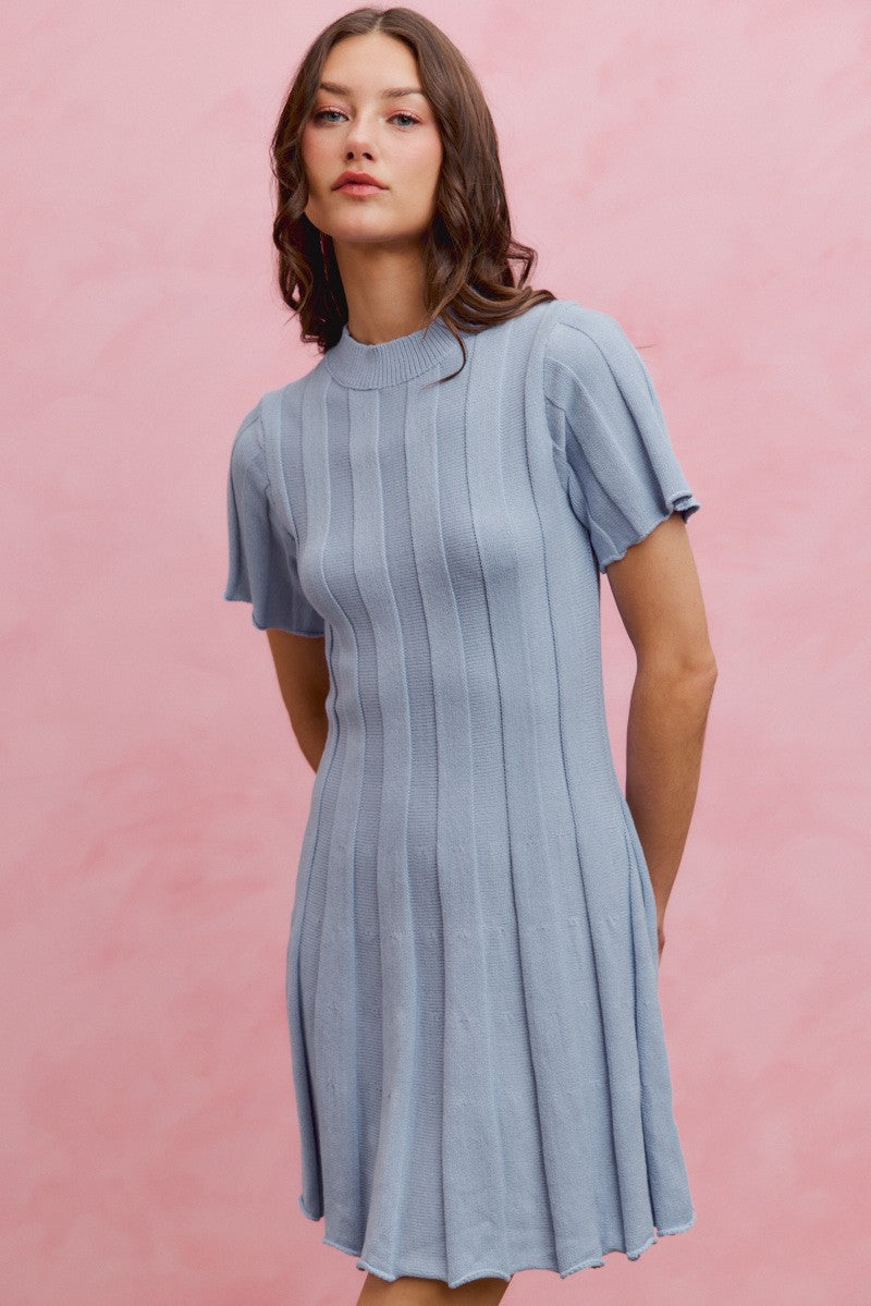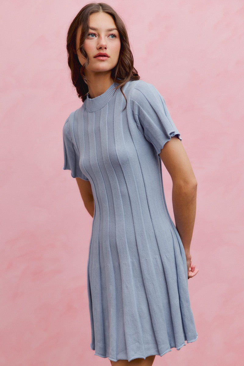 The Wide Rib Short Sleeves Sweater Knit Mini Dress is a cozy and chic choice for cooler weather. The wide rib design adds a modern touch to this classic mini dress style. With short sleeves, this dress is perfect for layering with a jacket or cardigan. The sweater knit fabric provides warmth and comfort, making it ideal for a casual day out or a relaxed weekend brunch. Pair it with ankle boots and a statement necklace for a stylish and effortless look.