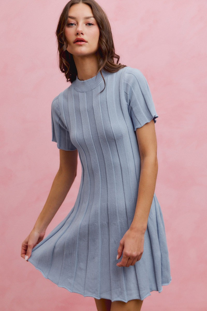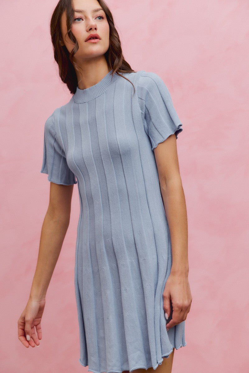 SO ME Wide Rib Short Sleeves Sweater Knit Mini Dress