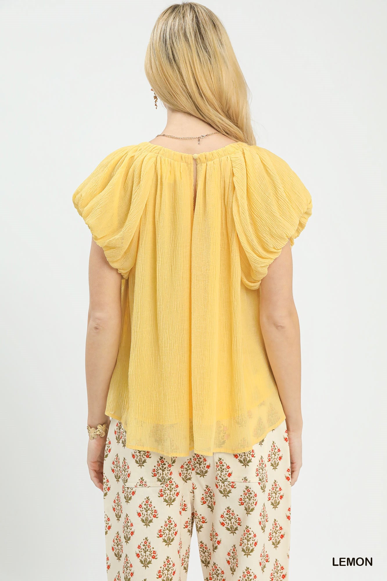 Umgee Crinkle Flutter Sleeve Peasant Top