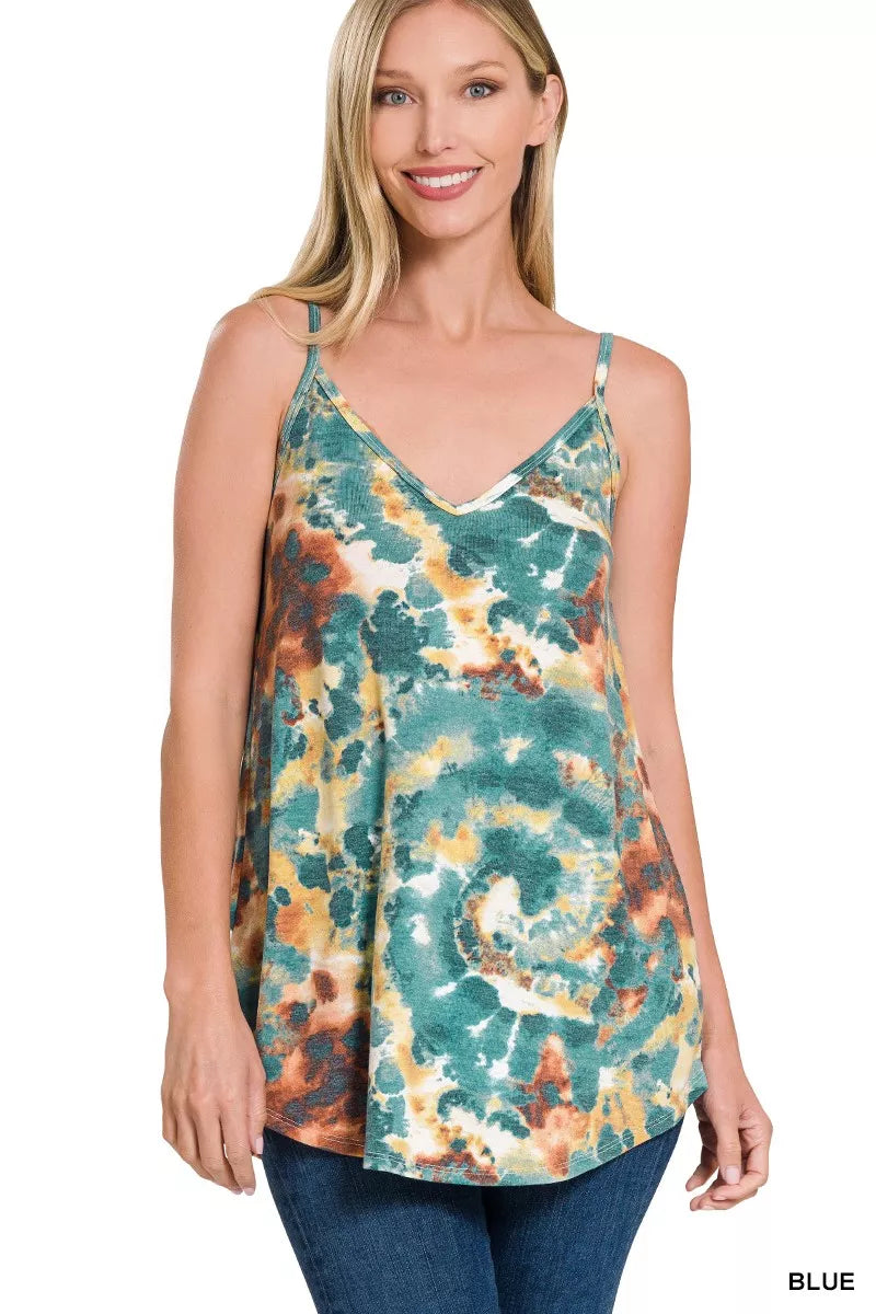 Zenana Tie Dye Front & Back Reversible Spaghetti Cami