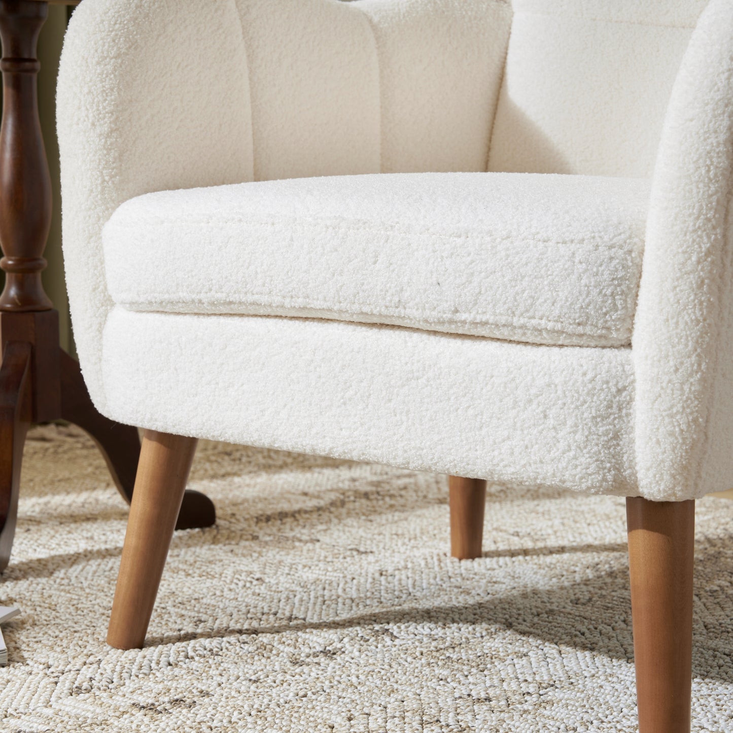Accent Chair, 41' Living Room Chair, Comfy Upholstered Accent Chair with Birch Wood Legs, Teddy Fabric, White