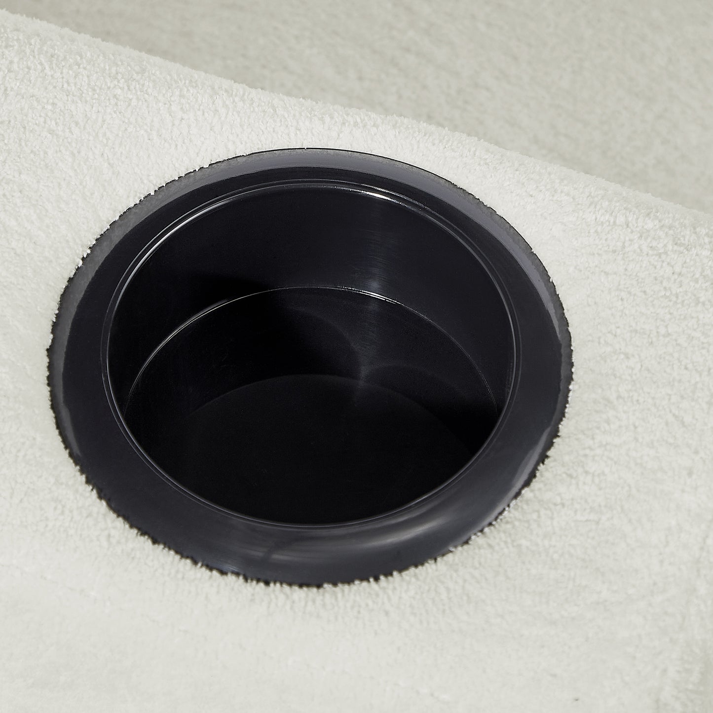 - Convenient cup holder on one armrest replaces the need for a coffee table