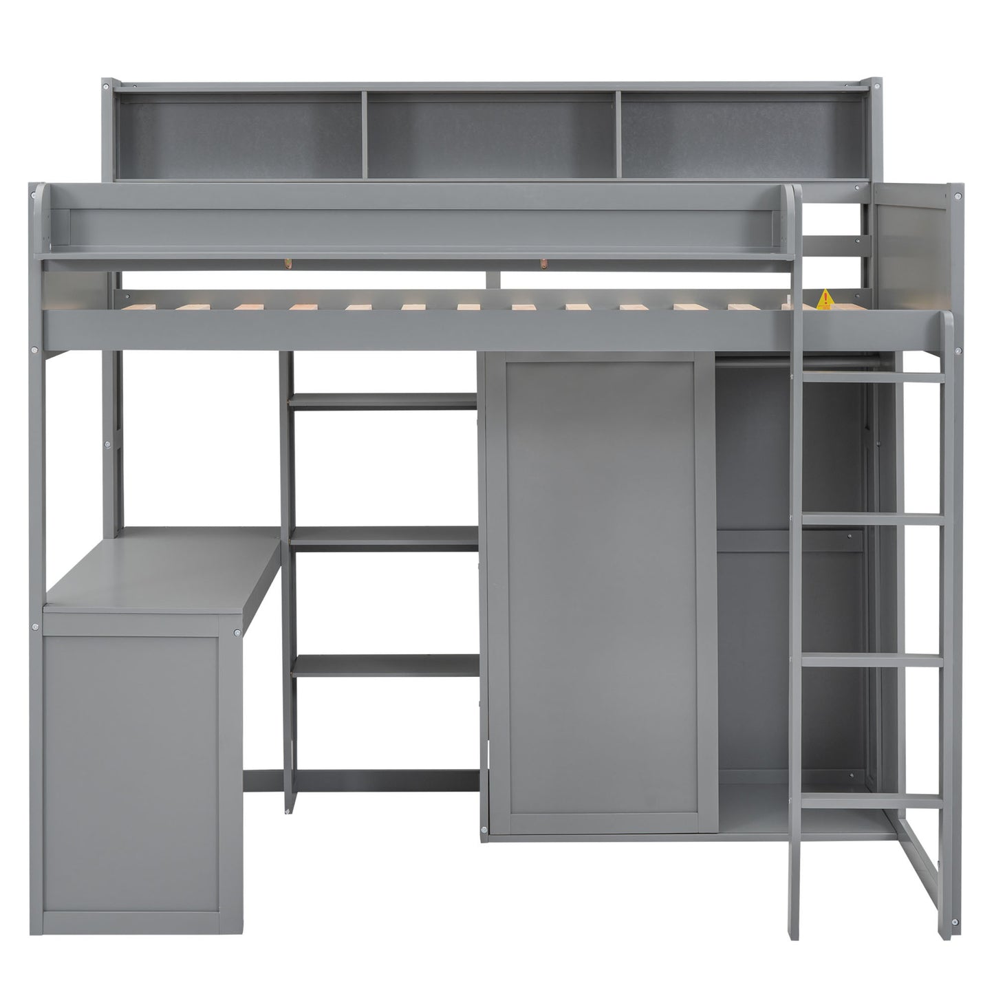 Wood Twin Size Loft bed with Multiple Storage Shelves and Wardrobe, Gray