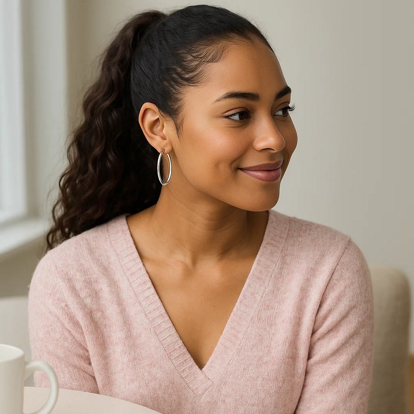 10k White Gold Polished Hoop Earrings (2x40 mm)