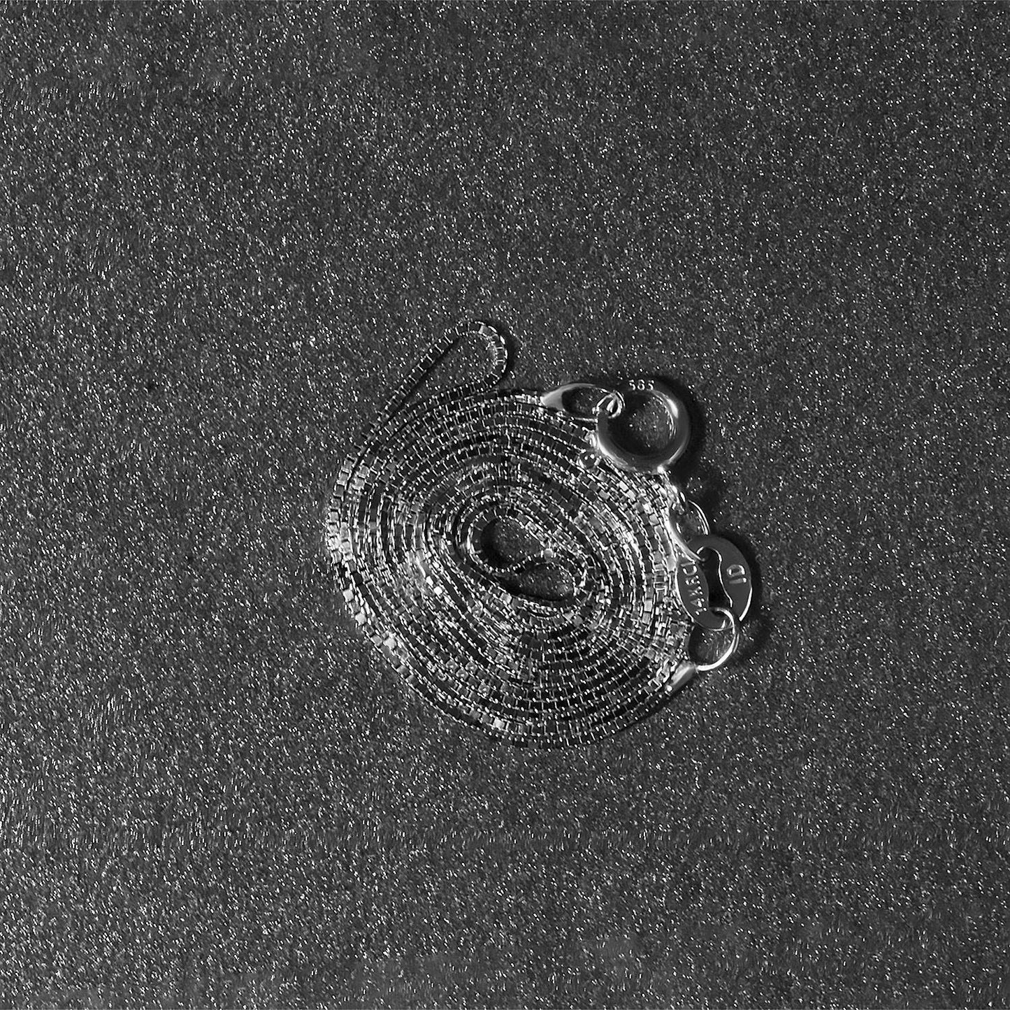 This classic box chain comes in 14k white gold and has a width of 0.60 millimeters.