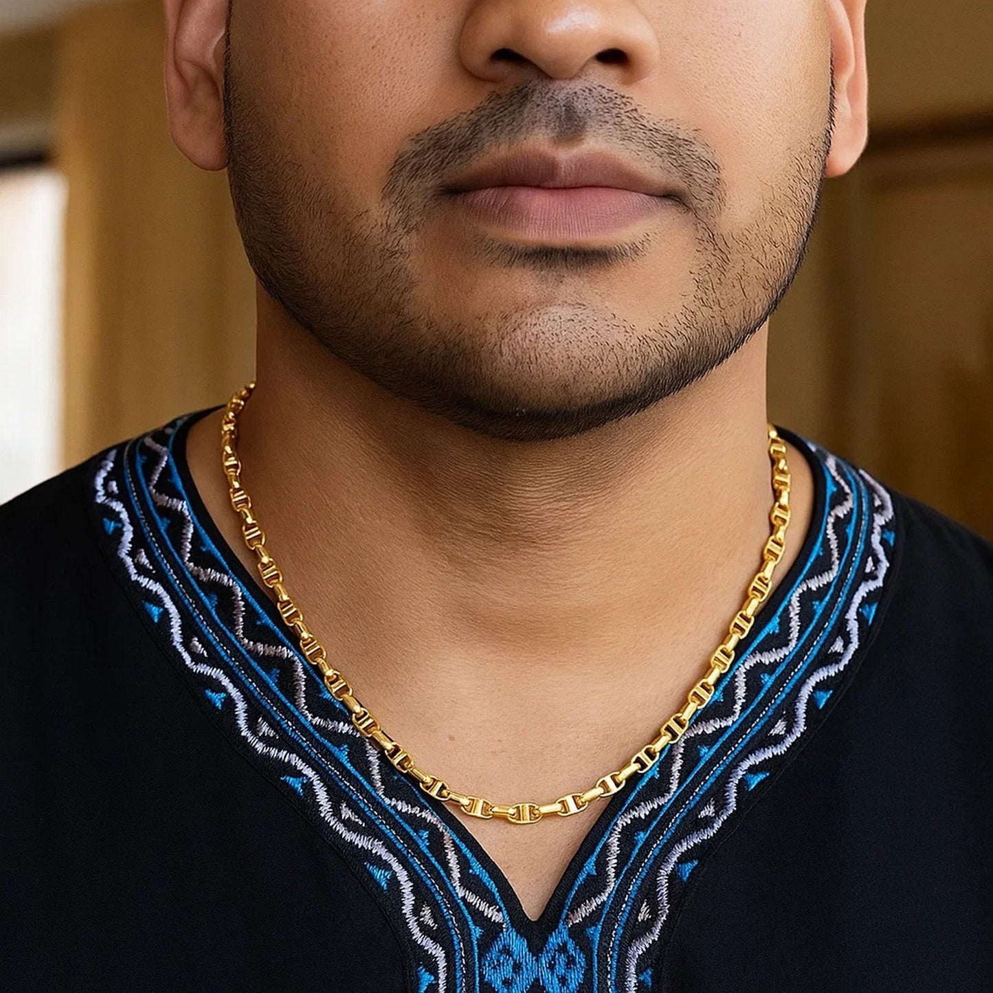 This anchor chain comes in 14k yellow gold and has a width of 4.50 millimeters.
