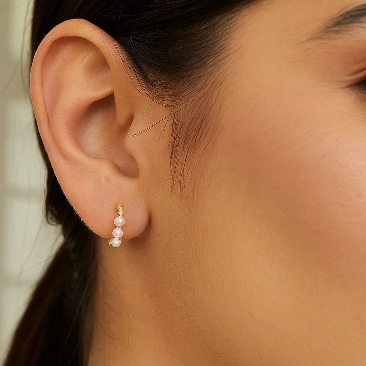This set of Pearl Huggie hoop earrings are beautifully crafted in 14k yellow gold with a high polish finish & secures with a snap closure. These beautiful huggie hoops are hand crafted & such a beautiful pair to add to your collection. Dont forget the matching necklace!