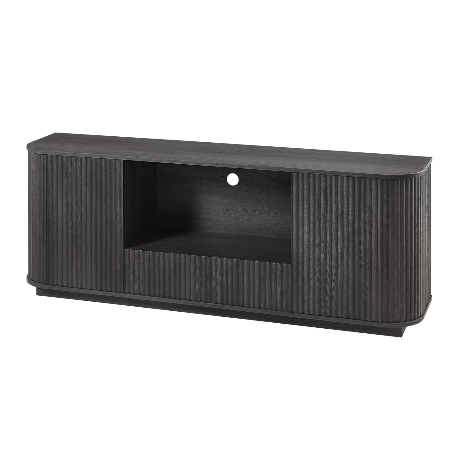 Modern Wavy TV Stand Rounded Sideboard with Storage Cabinet in Black, Particleboard & MDF, 64''W x 15''D x 24''H
