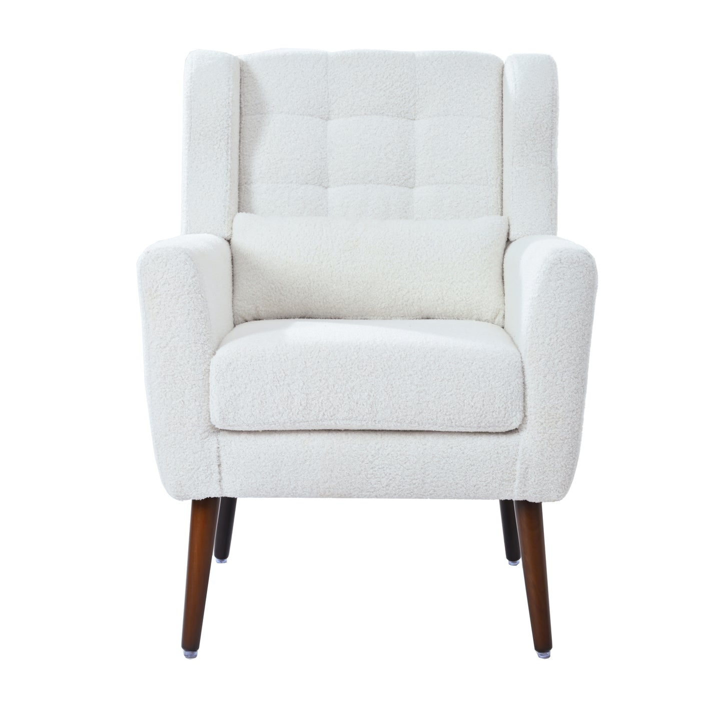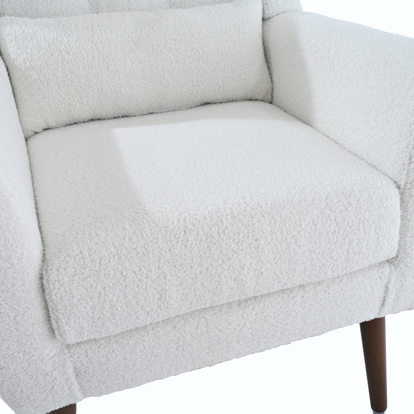Modern Accent Chair,Teddy Fabric Living Room Chairs Comfy Reading Chair,Mid Century Accent Chair, Lounge Arm Chairs Armchair for Living Room Bedroom (White)