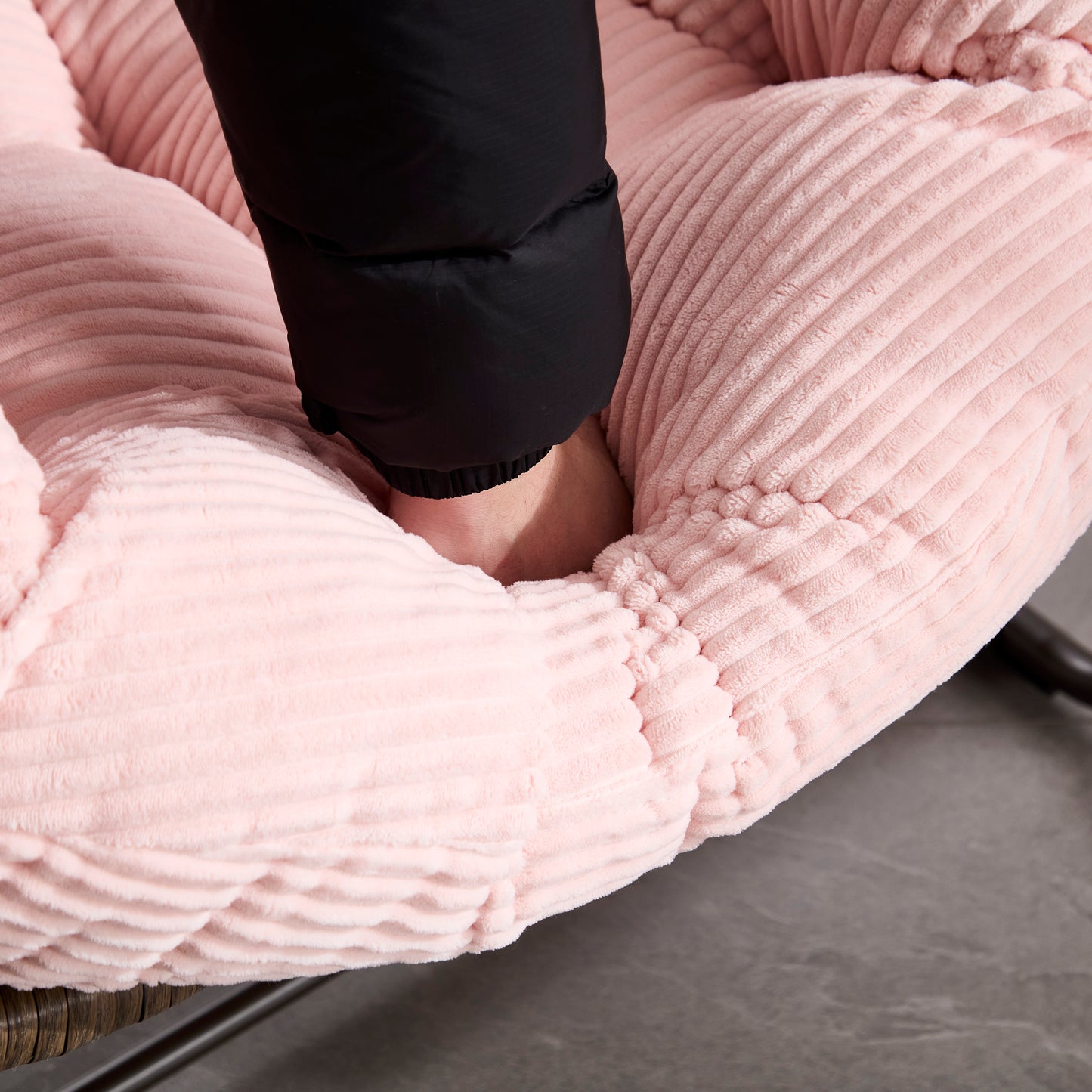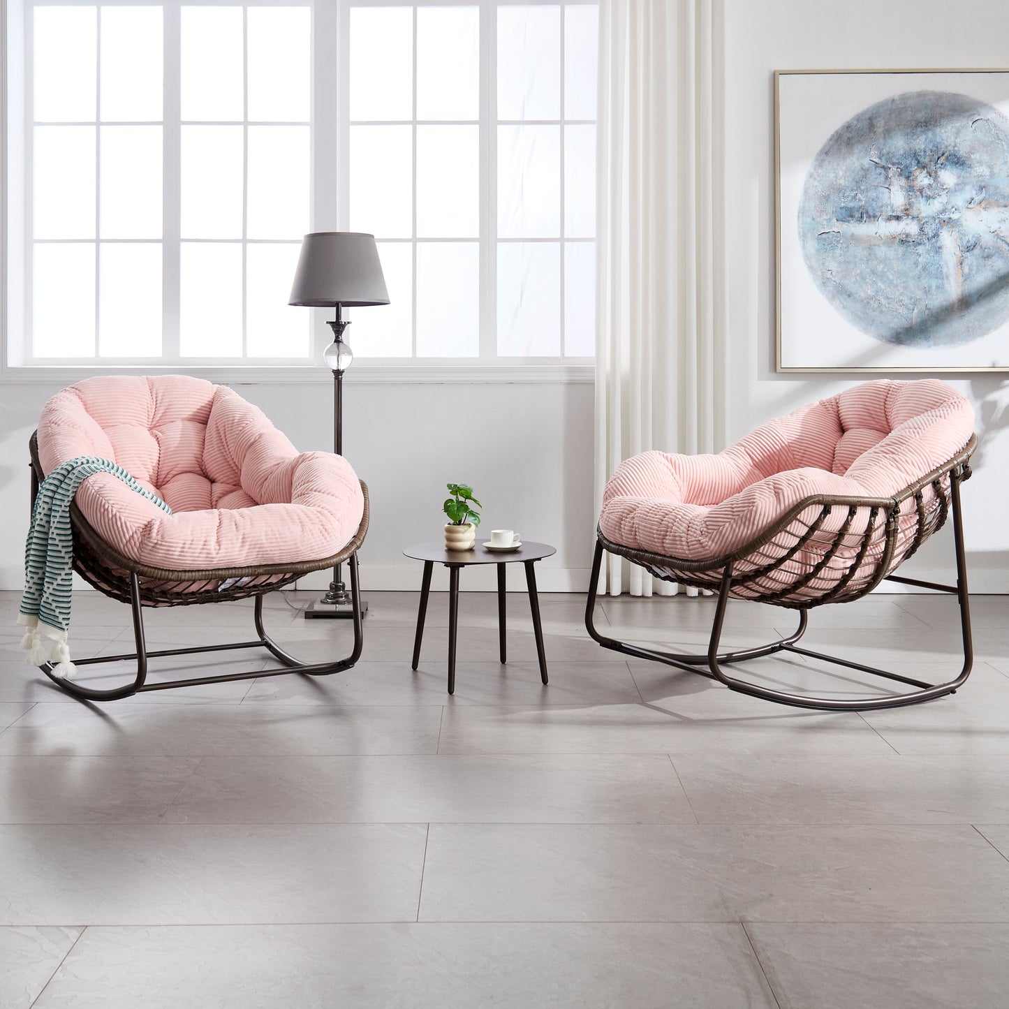 Outdoor Rattan Rocking Chair,Padded Cushion Rocker Recliner Chair Outdoor for Front Porch, Living Room, Patio, Garden, Pink