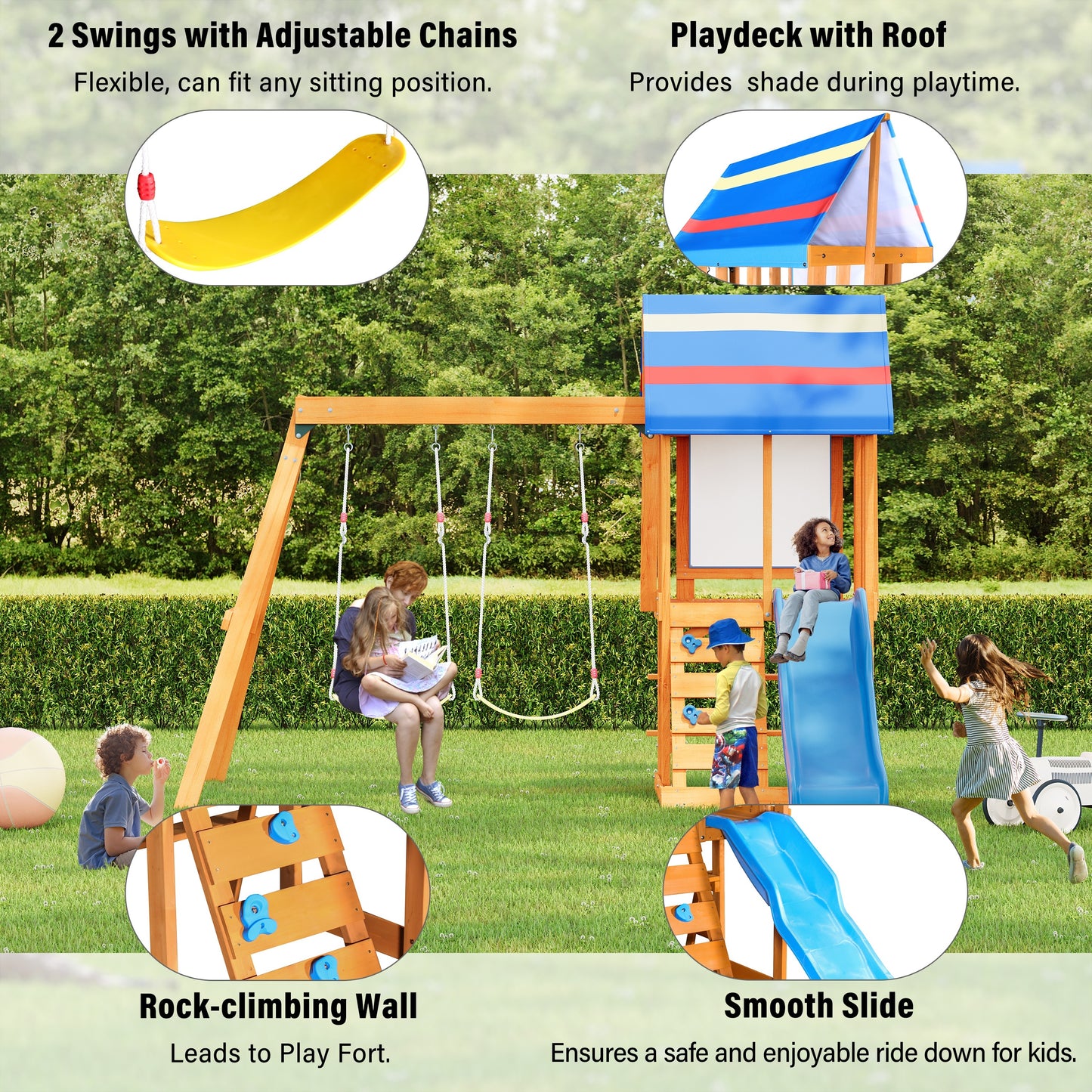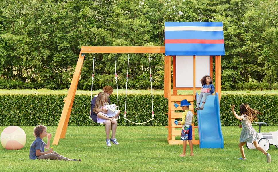 - Versatile Play Features - The set includes a sturdy slide and two swings, providing a variety of ways for children to play. This encourages physical activity and imaginative play, offering both sliding and swinging fun for kids of different ages.