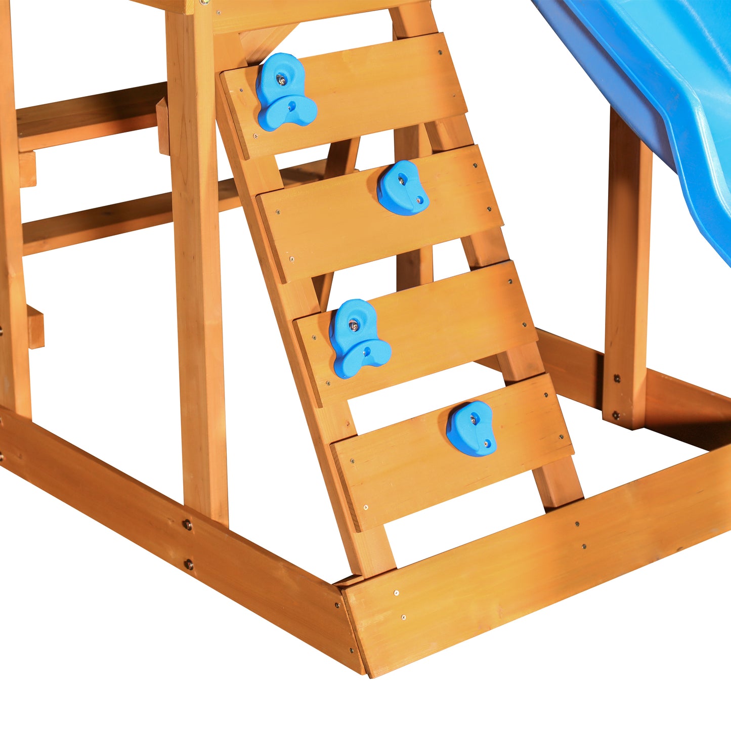 Blue Wooden Outdoor Swing Set 3 in 1 Children's Playset with Slide, Swings, and Climber for Garden, Backyard, Playground