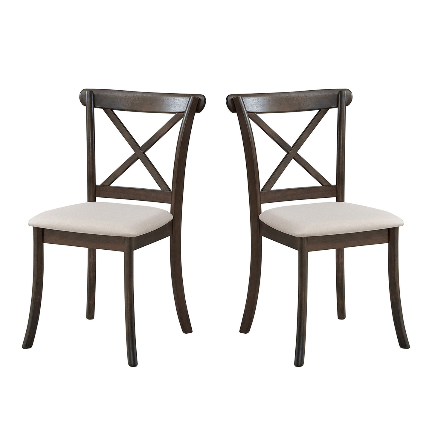 Wooden X Back Dining Chairs Set of 2, Modern Fabric Upholstered Kitchen Side 2PC Chairs, Cross Back Rubber Wood Farmhouse Dining Room Chair,Brown