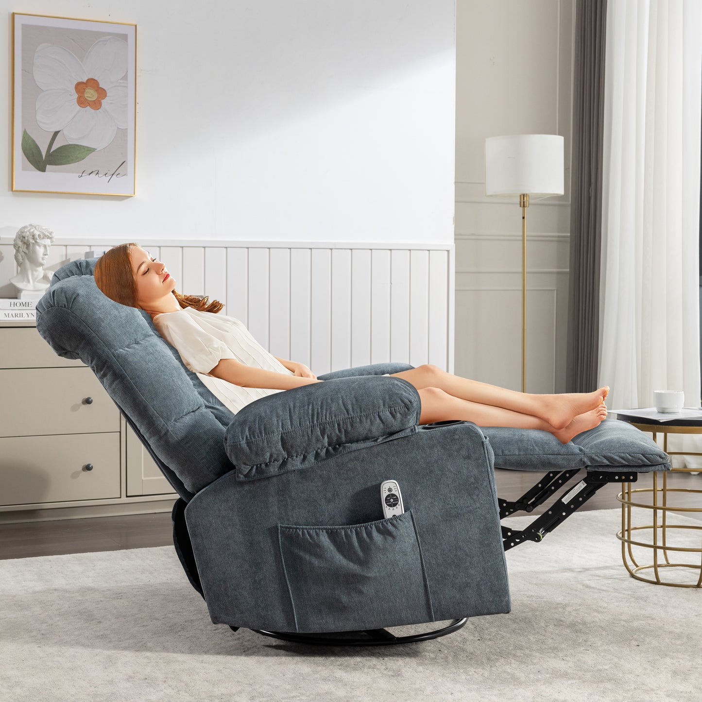 Massage Rocker Recliner Chair Rocking Chairs for Adults Oversized with 2 Cup Holders, USB Charge Port Soft Features a Manual Massage and Heat.A+B BLUE