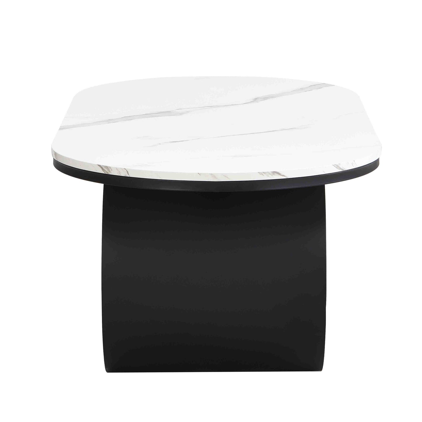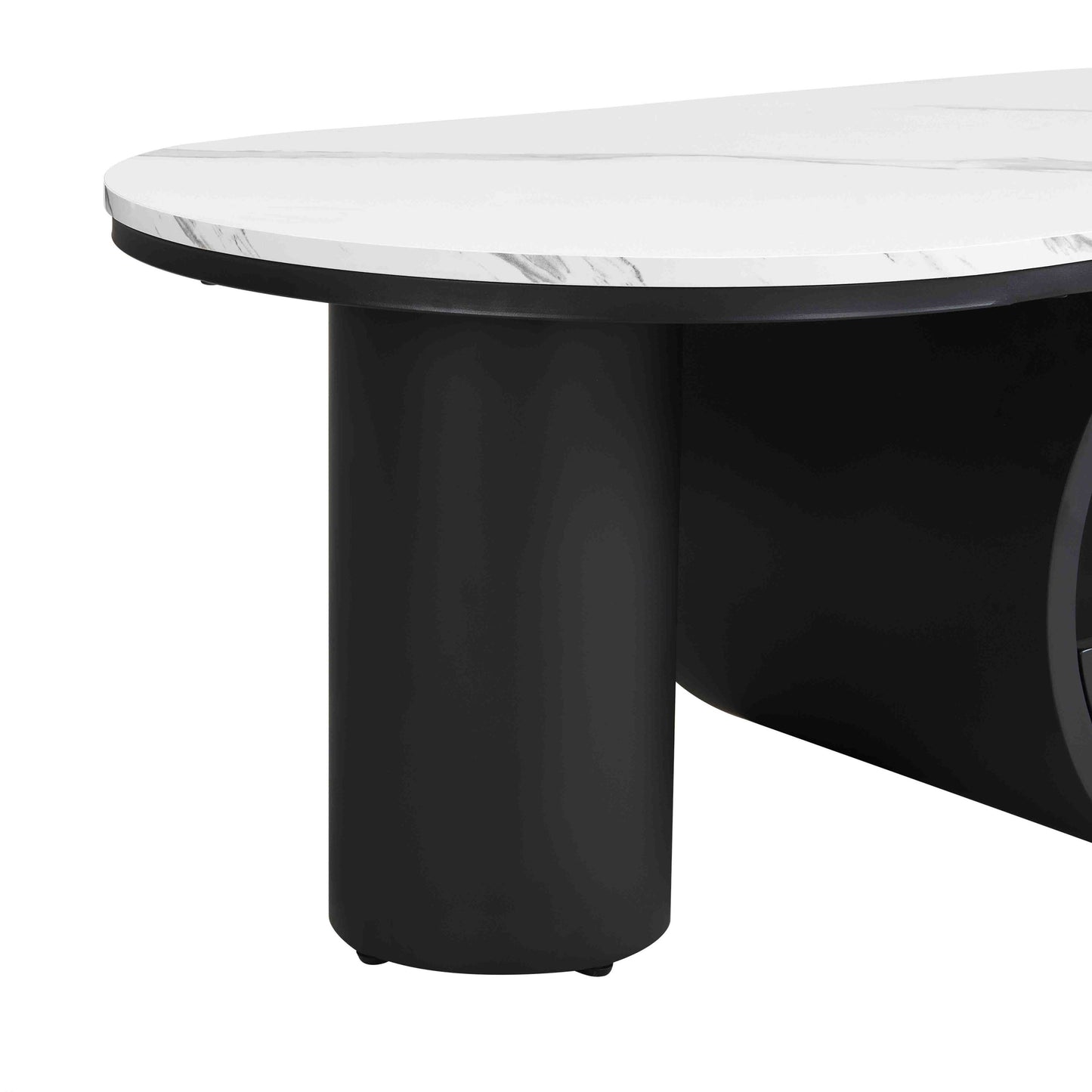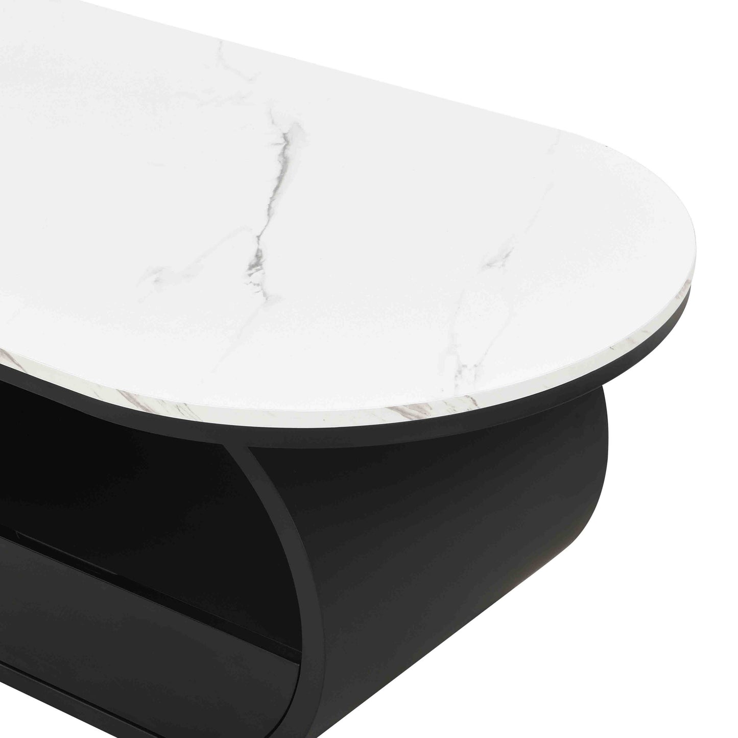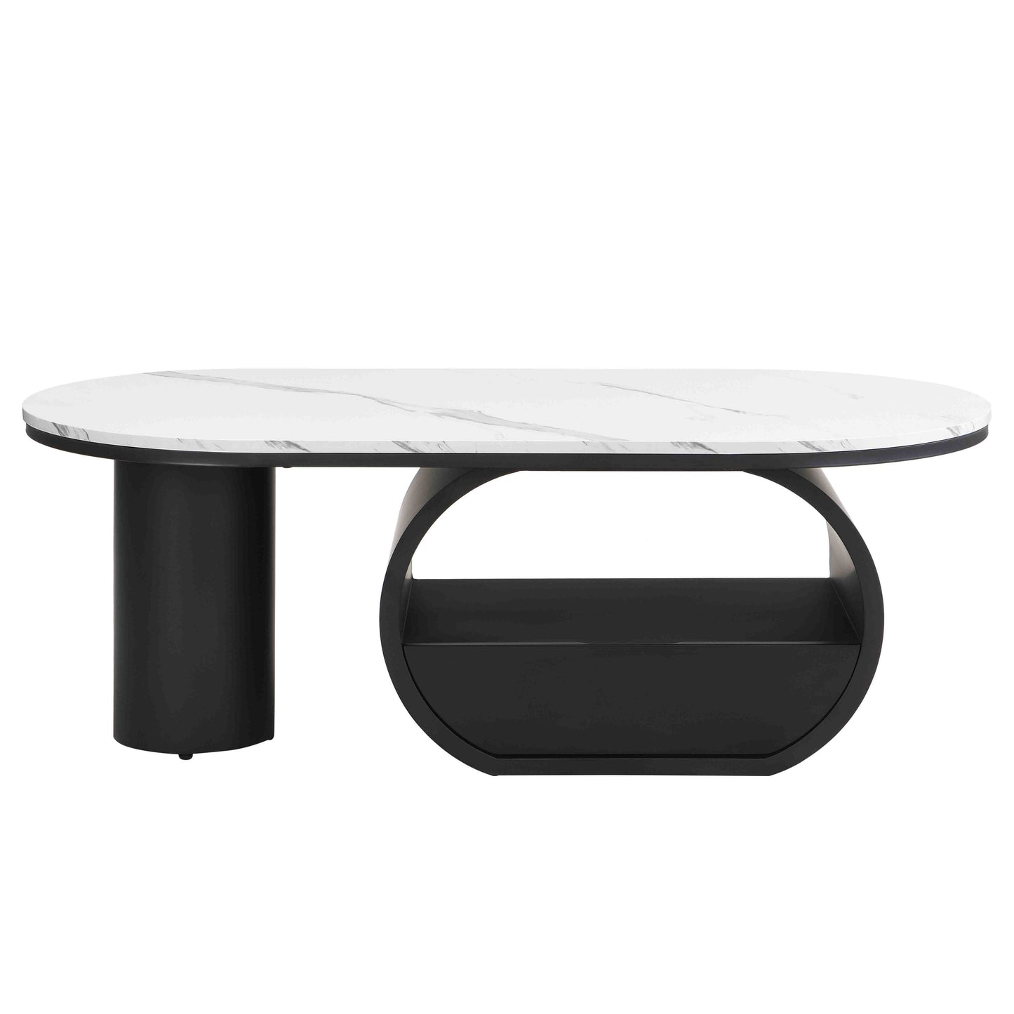 Luxury Modern Oval Coffee Table, 47.24'' Coffee Table with Storage Drawer, Faux Marble Top, Black Metal Center Table for Living Room